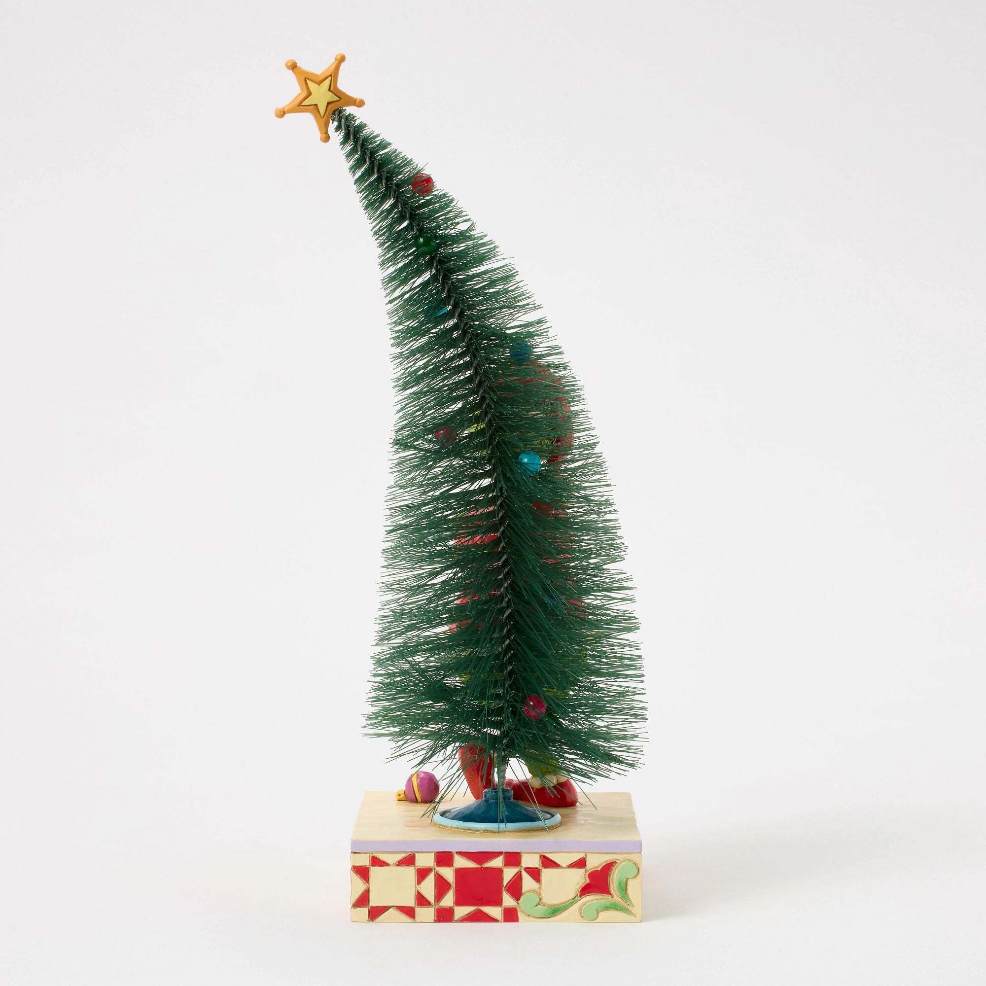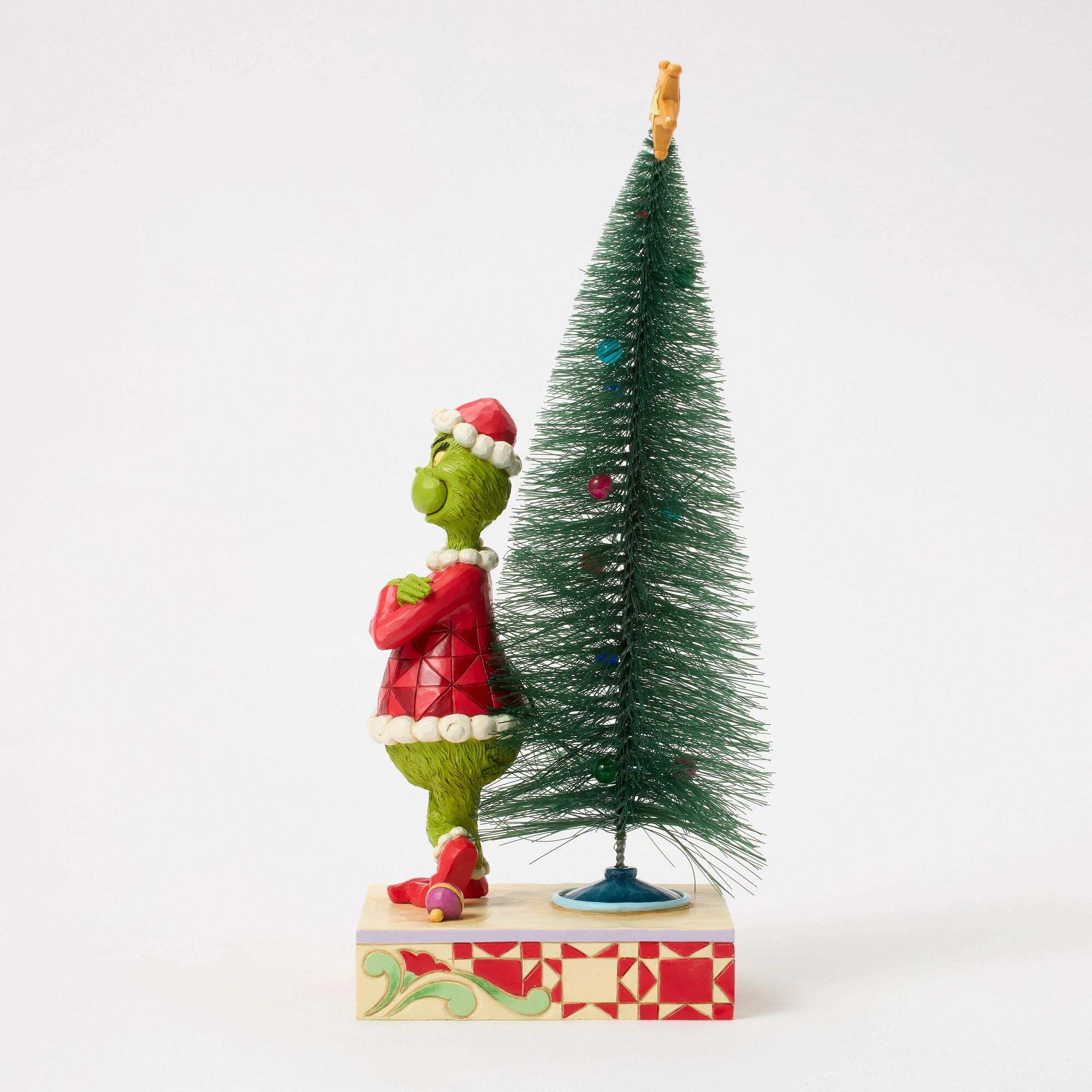 This Jim Shore figurine features The Grinch, arms crossed and grinning, exuding a mischievous attitude while standing near a crooked Christmas tree adorned with colorful baubles. Bring a touch of mischief into your home with Jim Shore's signature fine detail and rich colors. Designed by award-winning artist and sculptor Jim Shore for The Grinch Collection. These figurines are not children's toys. Intended for adults only. Height: 26.5cm