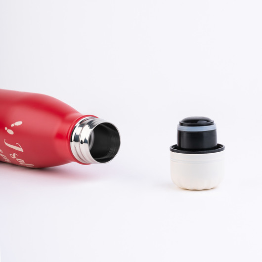 Double-walled stainless steel bottle keeps your drink hot for 12 hours and cold for 24 hours. Includes airtight cap.