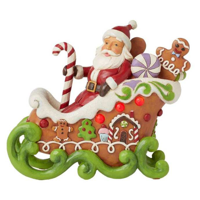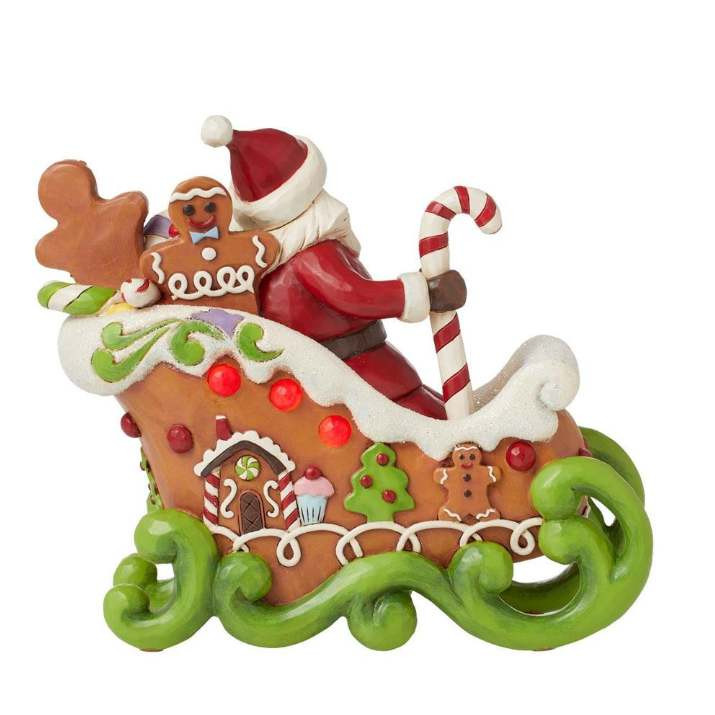 Santa Claus Sleigh Luminous Gingerbread Figure- Jim Shore Heartwood Creek