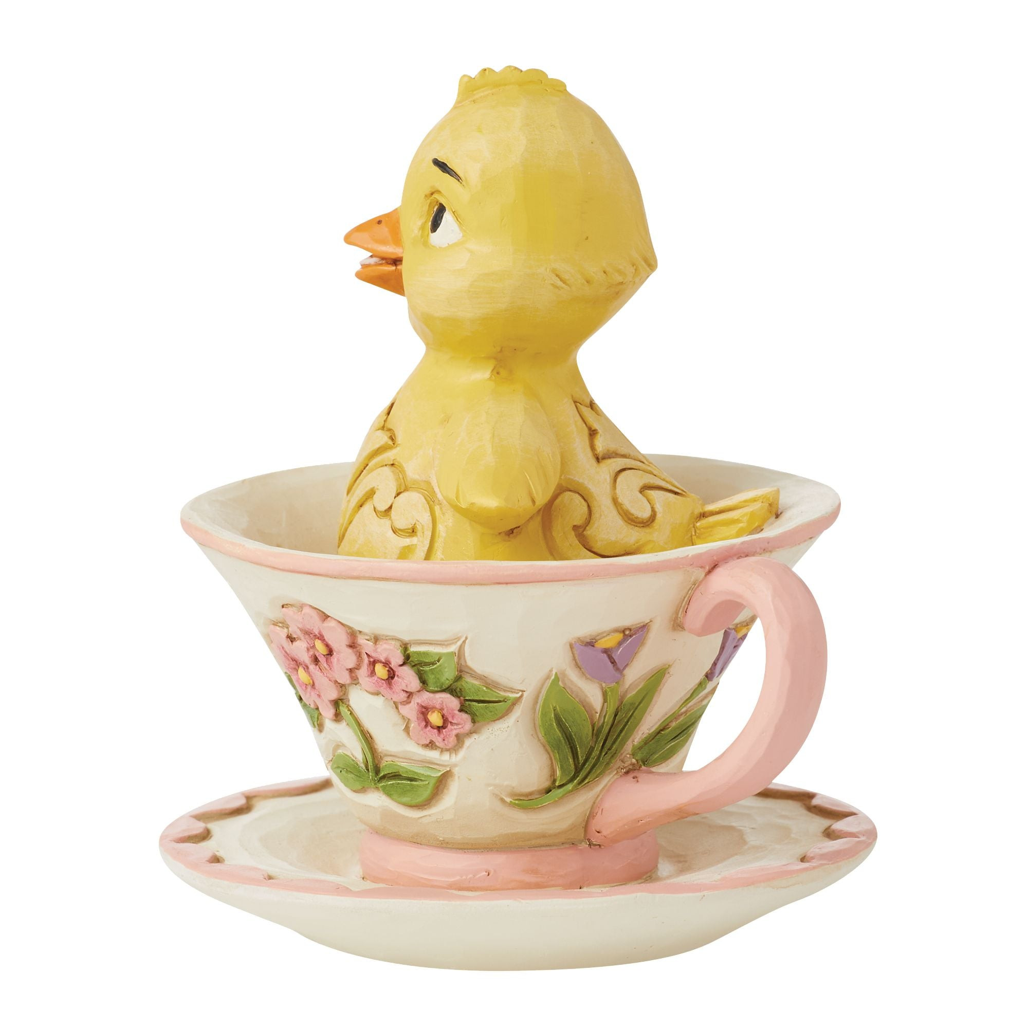 Teacup Chick Figurine from the Heartwood Creek Collection, designed by award-winning artist and sculptor Jim Shore. Each figurine is hand-painted and slight color variations are to be expected, making each piece unique. Packaged in a gift box. These items are not children's toys. Intended for adult use only.