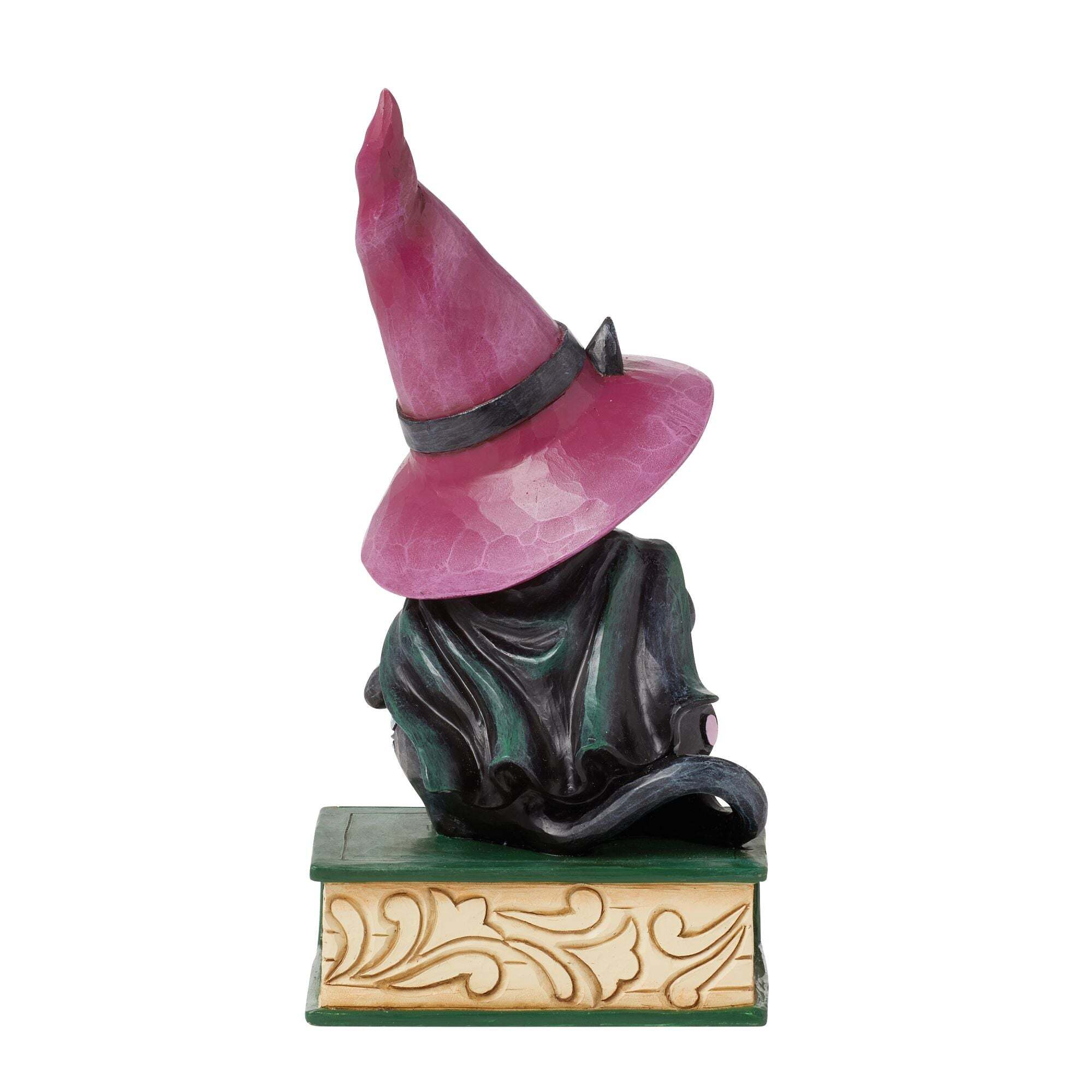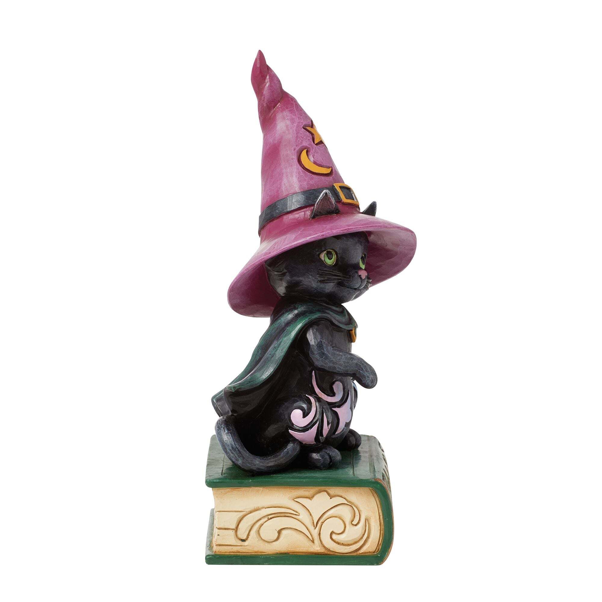 Bring a touch of magic with this adorable Jim Shore figurine of a black cat wearing a witch's hat and cape. Sitting on a spell book, this little feline adds a dose of sweet charm and spellbinding to your Halloween decor.