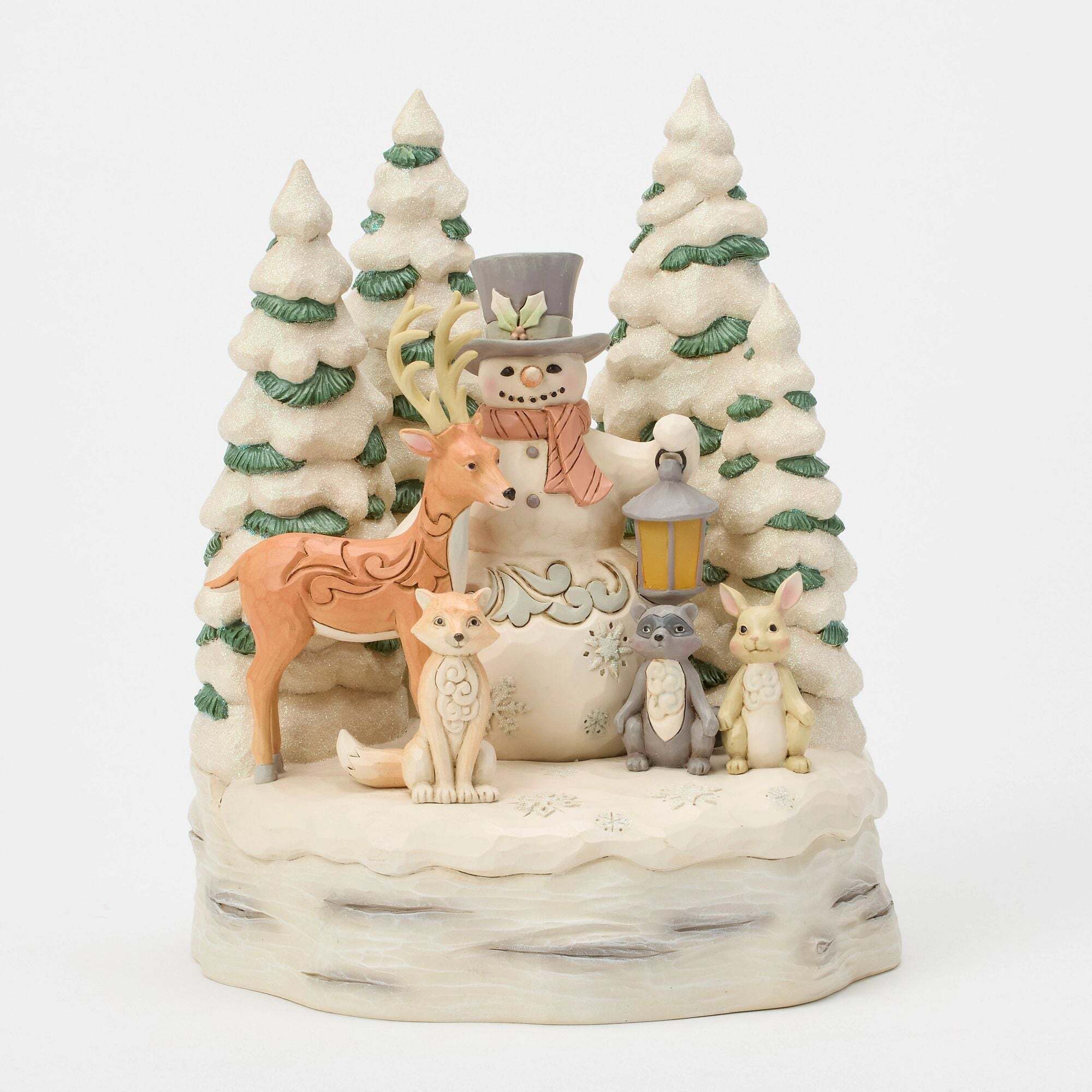 Add a cozy, woodland-inspired touch to your holiday décor with the WhiteWoodland Snowman with Forest. Part of the exclusive WhiteWoodland collection, this charming figurine features a cheerful snowman surrounded by miniature forest elements, beautifully hand-painted with intricate details. Perfect for shelves, mantels, or as part of a festive display.