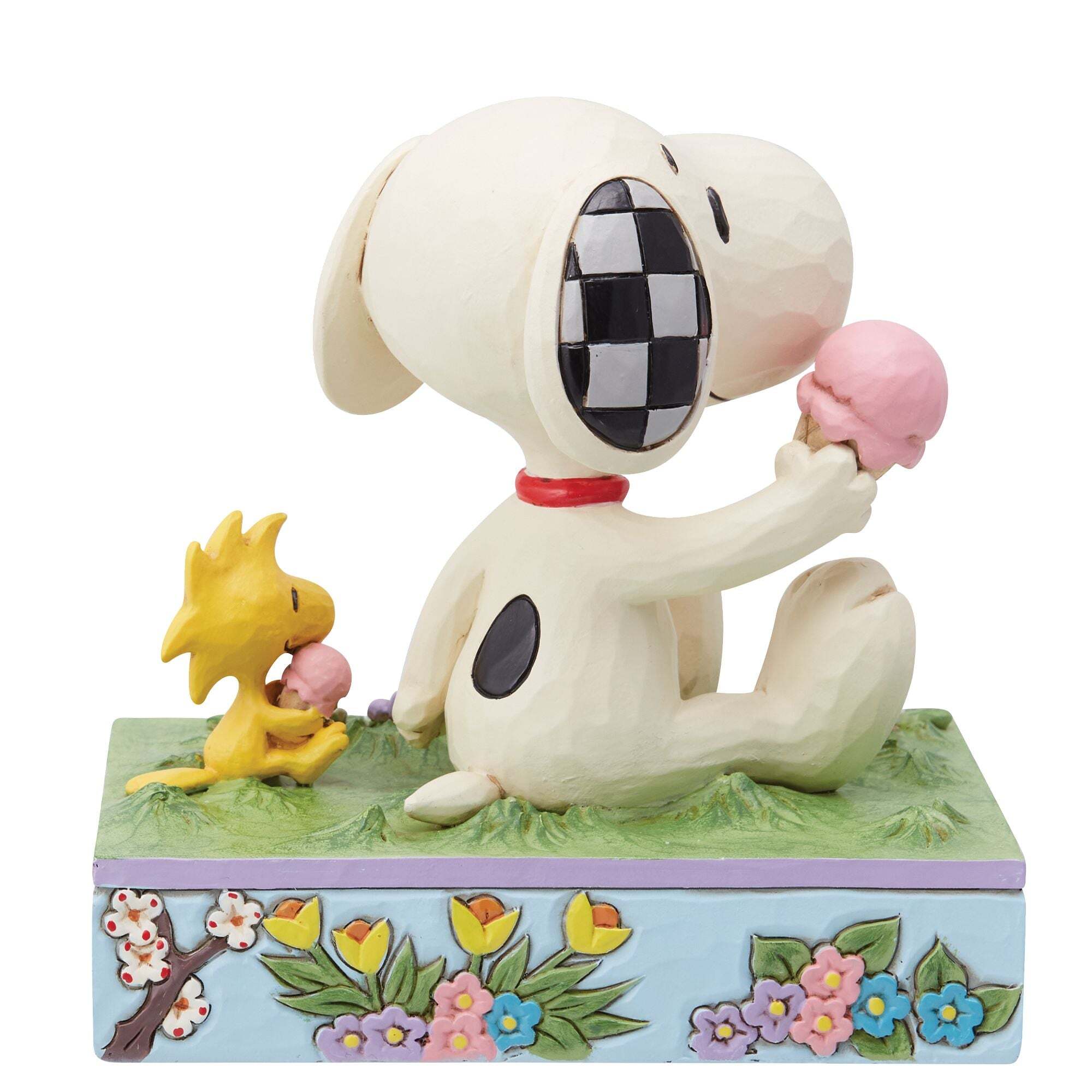 This exclusive Jim Shore figurine features the fan-favorite Peanuts duo enjoying a belle summer day. Relaxed on the grass, surrounded by flowers, they enjoy their ice cream as if summer would never end. These figurines are not children's toys. Intended for adult use only. Height: 13cm
