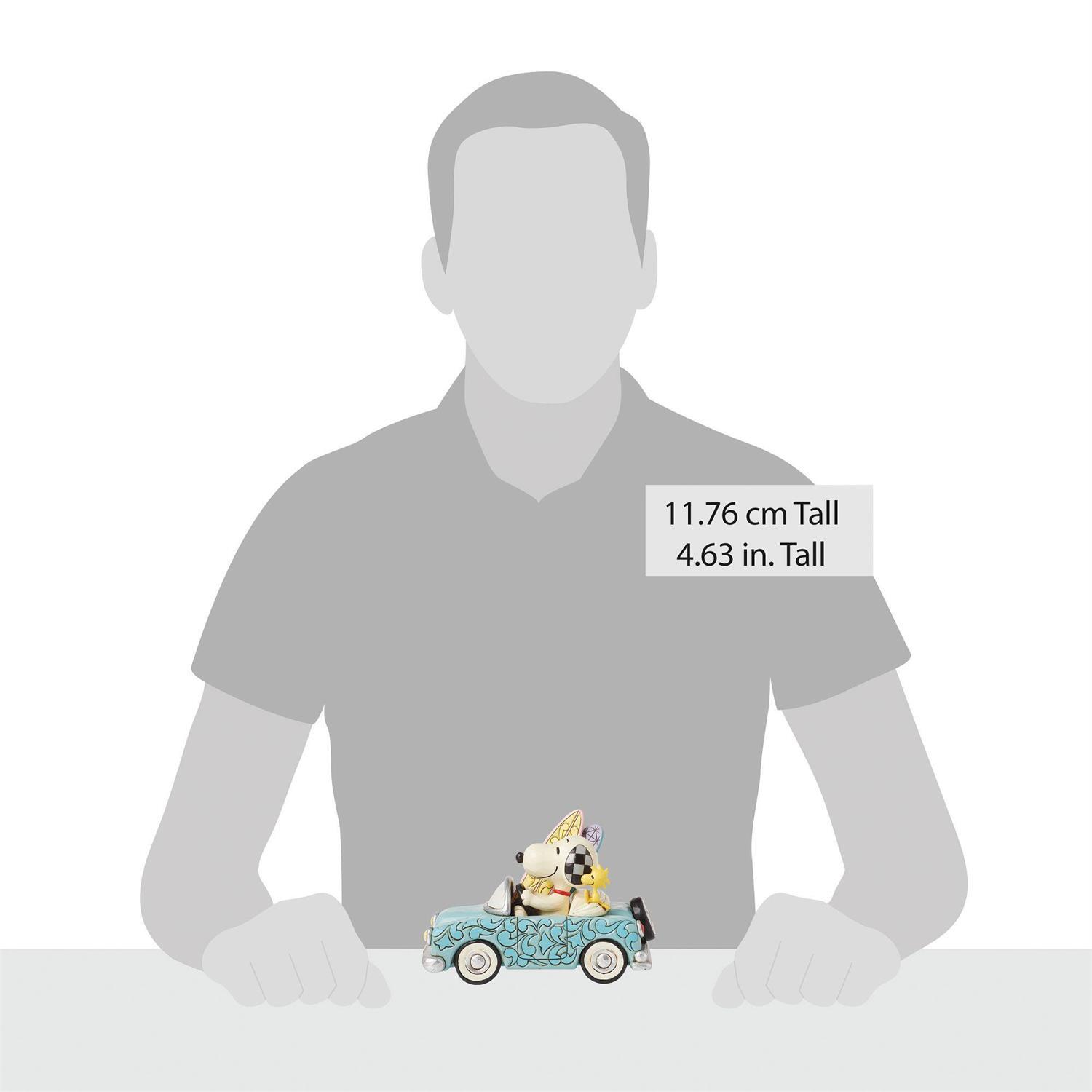 Snoopy's got the wheel in this delightful Jim Shore creation, he and Woodstock head to the beach in an eye-catching convertible full of surfboards. The pair prepare to catch some waves in the groovy car patterned with enchanting rosemaling detail.