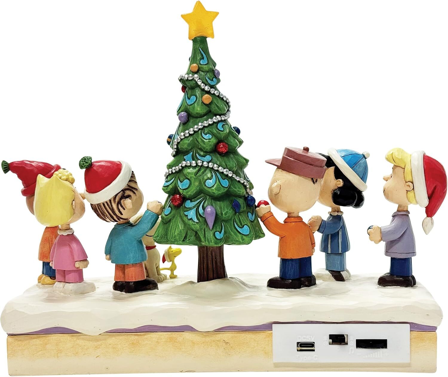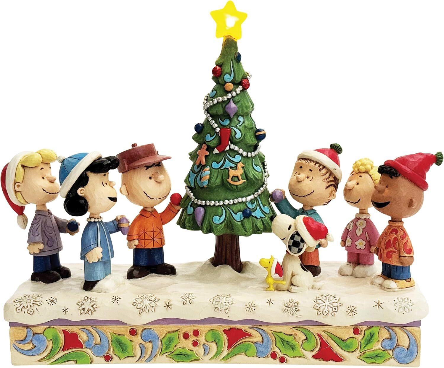 Musical figurine: from the Jim Shore Peanuts collection, entitled "O Christmas Tree". Combines Jim Shore's unmistakable popular style with classic Peanuts characters.