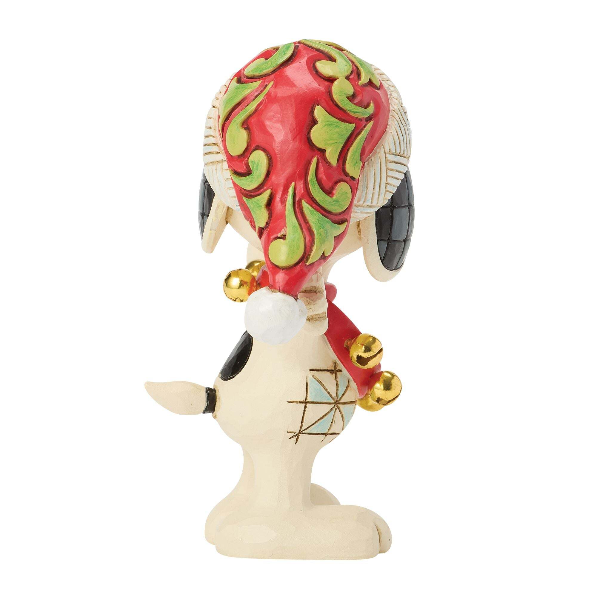 Wearing a festive Christmas hat with swirling patterns, Snoopy jingles his bells in true holiday tradition with this Jim Shore mini-figure. Compact and colorful, this piece will bring a touch of Peanuts magic to your Christmas decorations.