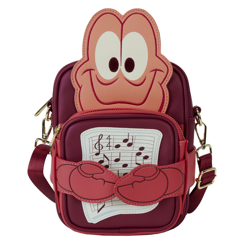 Strike up the underwater band in style! Our Loungefly Disney The Little Mermaid 35th Anniversary Sebastian Crossbuddies® Bag is ready for a spectacular show.
