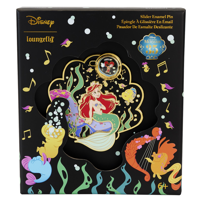 Pull up a shell for a front-row, underwater concert view! Our Loungefly Disney The Little Mermaid 35th Anniversary “Life is the Bubbles” 3-inch Collector Box Pin makes the perfect treasure for your collection.