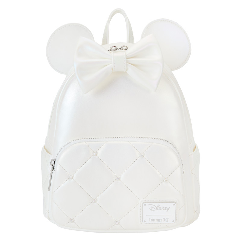 Yoohoo! Say, “I do!” Our Loungefly Disney Iridescent Wedding Mini Backpack is ready for a special day. This pearly white accessory, with iridescent details, makes an elegant and fun addition to a festive occasion.