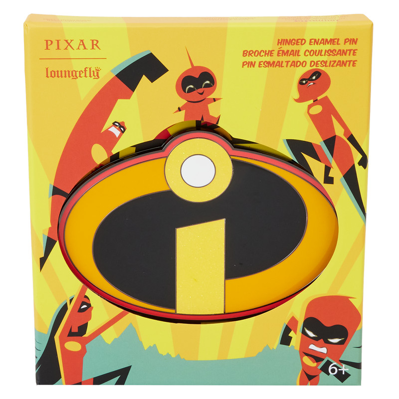 Calling all supers! Save the world in style with an enamel pin worthy of any hero. Shining with glitter details, this design gives the Incredibles logo a daring new makeover. Open the pin to reveal a stylized portrait of the Parr family. This collector’s pin makes a heroic addition to any outfit or bag and will keep you safe as you venture out on your next mission.