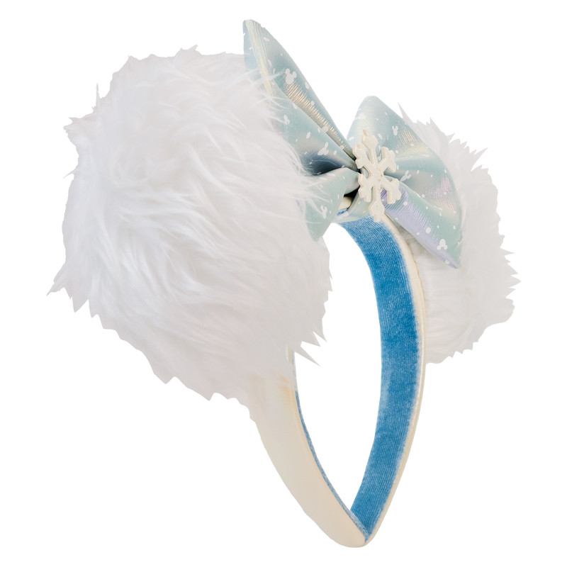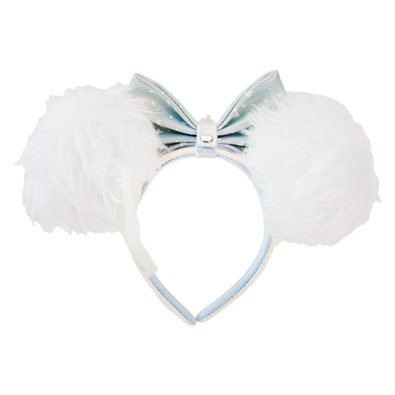 Headband Features: Vegan leather (polyurethane), detachable 3D bow, faux fur, die-cut, pearlescent, and iridescent details, embroidered Loungefly logo (side of band)