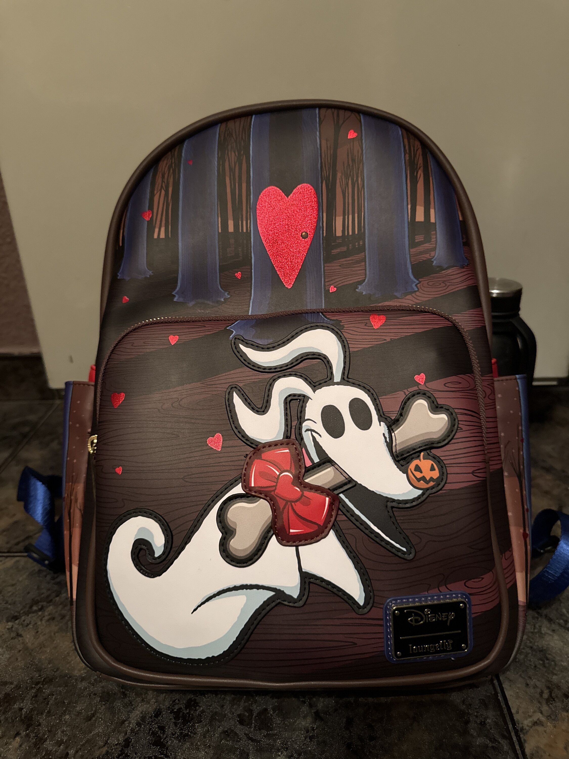 Best friends for eternity! Show some love for this ghostly pup with a full-size backpack designed to thrill. Look closely, and you’ll see a heart-shaped door to another world. With so many scream-worthy details, this accessory is a must-possess item for fans of Disney Tim Burton’s The Nightmare Before Christmas.