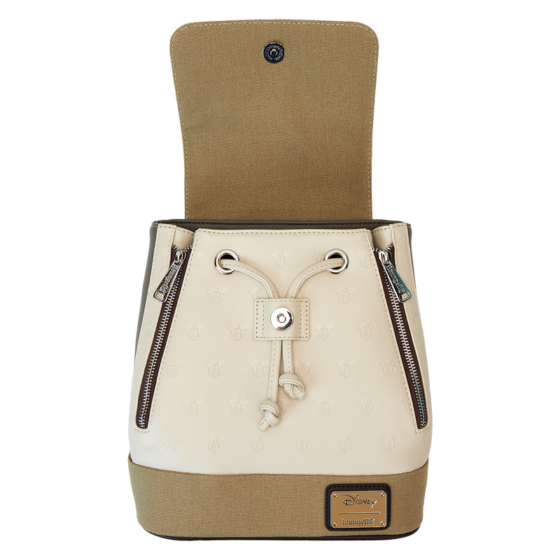 Take those best pal vibes with you wherever you go. This mini backpack of Disney’s Mickey Mouse and Friends sure is swell! The front flap features a canvas material, with shiny gold embroidery of Mickey Mouse’s face. A button snap flap, drawstring pulls, and zippers help secure your valuables for the day, and if you flip the backpack around, you’ll find a print of the whole gang: Disney’s Mickey Mouse, Minnie Mouse, Donald Duck, Daisy Duck, Goofy, and Pluto. A debossed pattern of Mickey Mouse’s face on the front adds an extra touch of character. Set off on fun adventures in style.