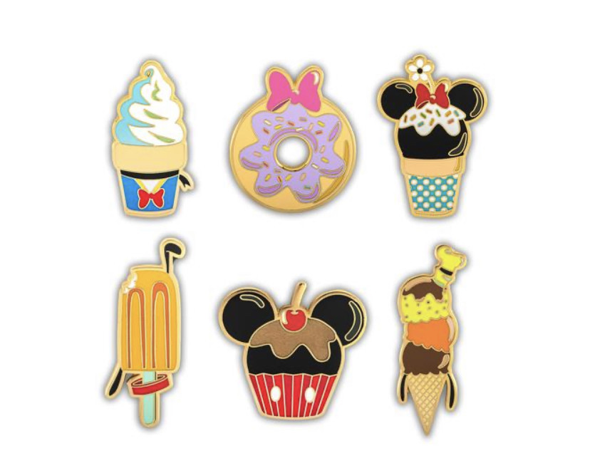 The gang is all here. Mickey, Minnie, Donald, Daisy, Goofy and Pluto. Don't they just look delicious!! We love these yummy snacks. What pin is your favorite?? Is it the soft serve Donald Duck? Daisy donut? How about the chaser Mickey Mouse cupcake with the jelly fill topping. You won't know which one you have until you open the box. Will you get Mickey, Minnie, Donald, Daisy, Goofy or Pluto. Collect all 6.