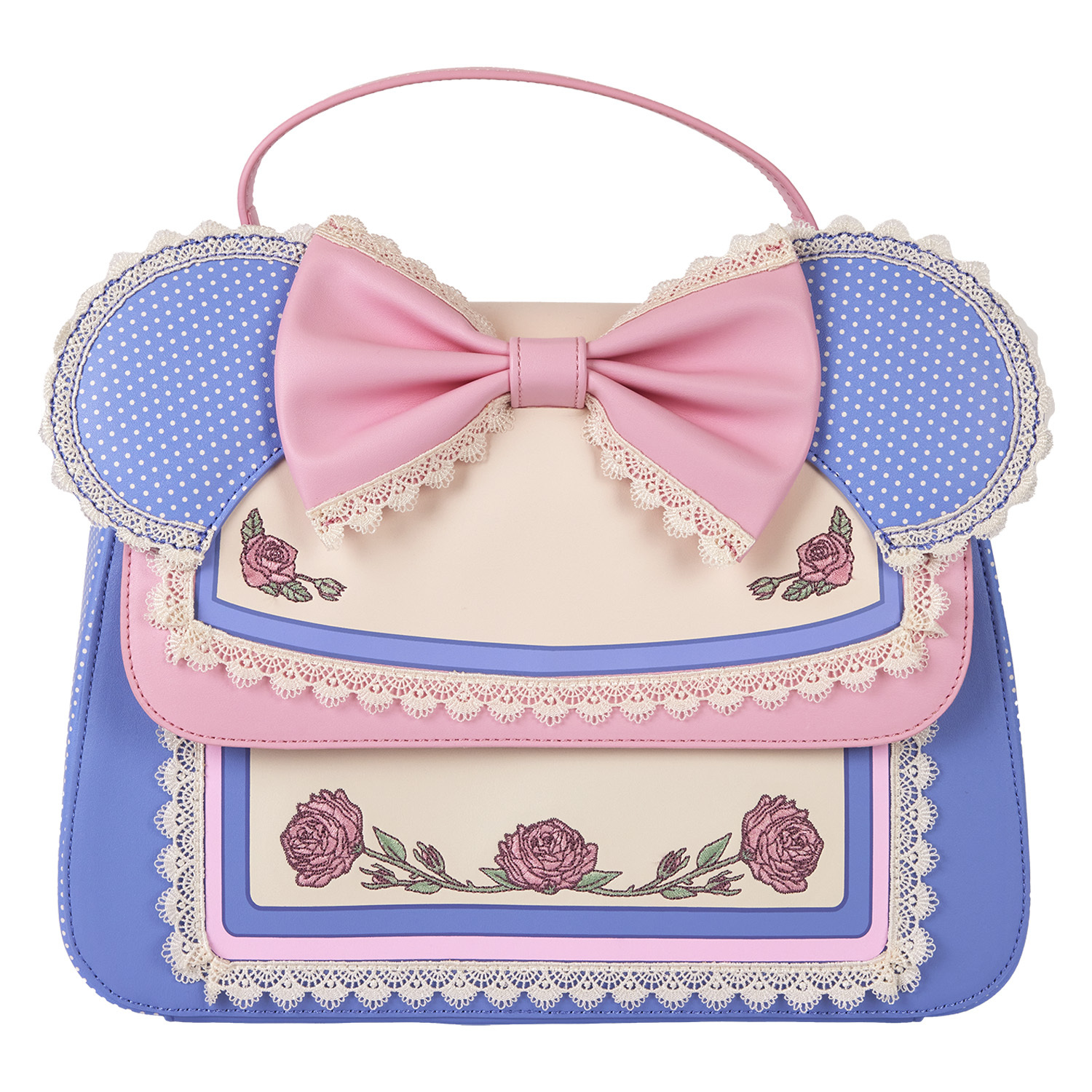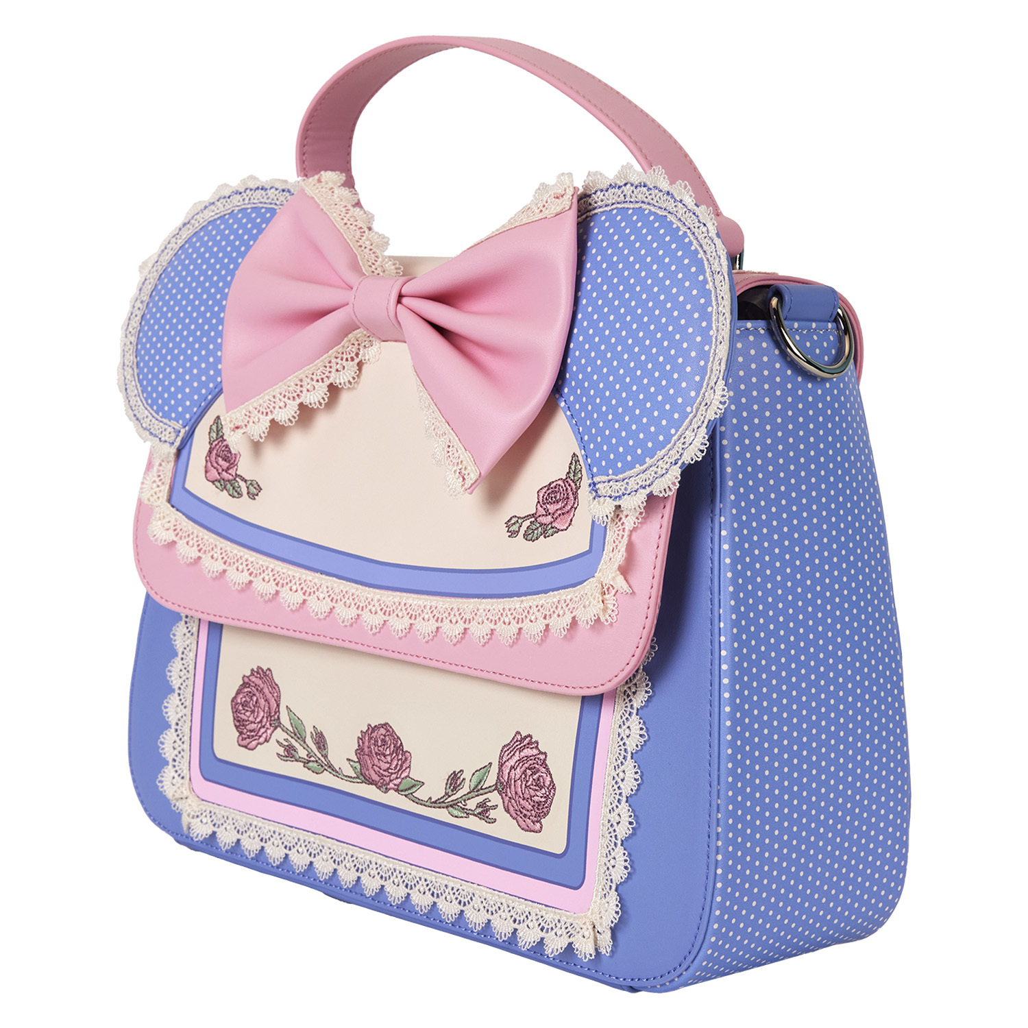 Fashion is in full bloom with this Disney’s Minnie Mouse crossbody bag. Special Minnie Mouse flourishes make this accessory extra charming. Her applique ears, decorated with a polka dot print, pop up over the top of the purse, and lace trim adds a delicate touch. There’s a pink 3D bow in the middle, on the front flap, and embroidered roses on the front and back unfurl in decorative detail. Pack your daily essentials, take off on an adventure, and watch the fun blossom.
