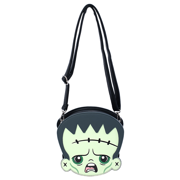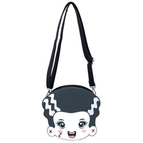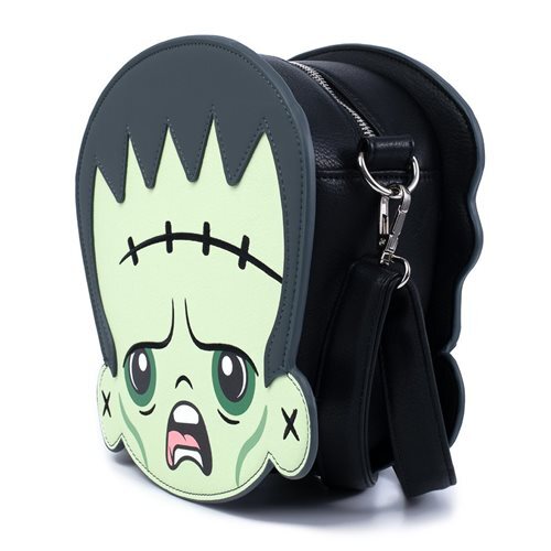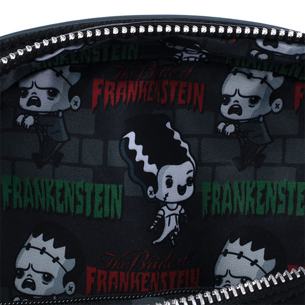 This Loungefly Universal Monsters Frankie & Bride Crossbody Bag has two sides