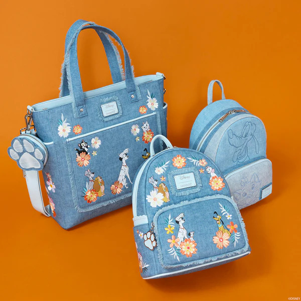 This denim mini backpack is covered in embroidered floral details – amongst them you'll find images of your favourite Disney dogs and cats!