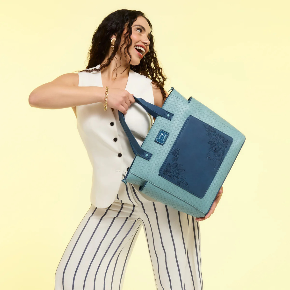 This convertible tote bag features Stitch sitting amongst embroidered flowers on the front. Convert it between a backpack and a crossbody for easy carrying while you're traveling!