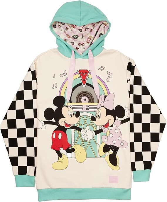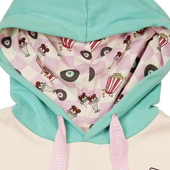 The Loungefly Unisex Hoodie is made of French Terry cotton with Jersey Lined Hood (60% cotton, 40% polyester). Extra-large lanyard-style drawcords add versatility in wear and fit. Cuffs and waistband are 95% cotton and 5% Spandex.
