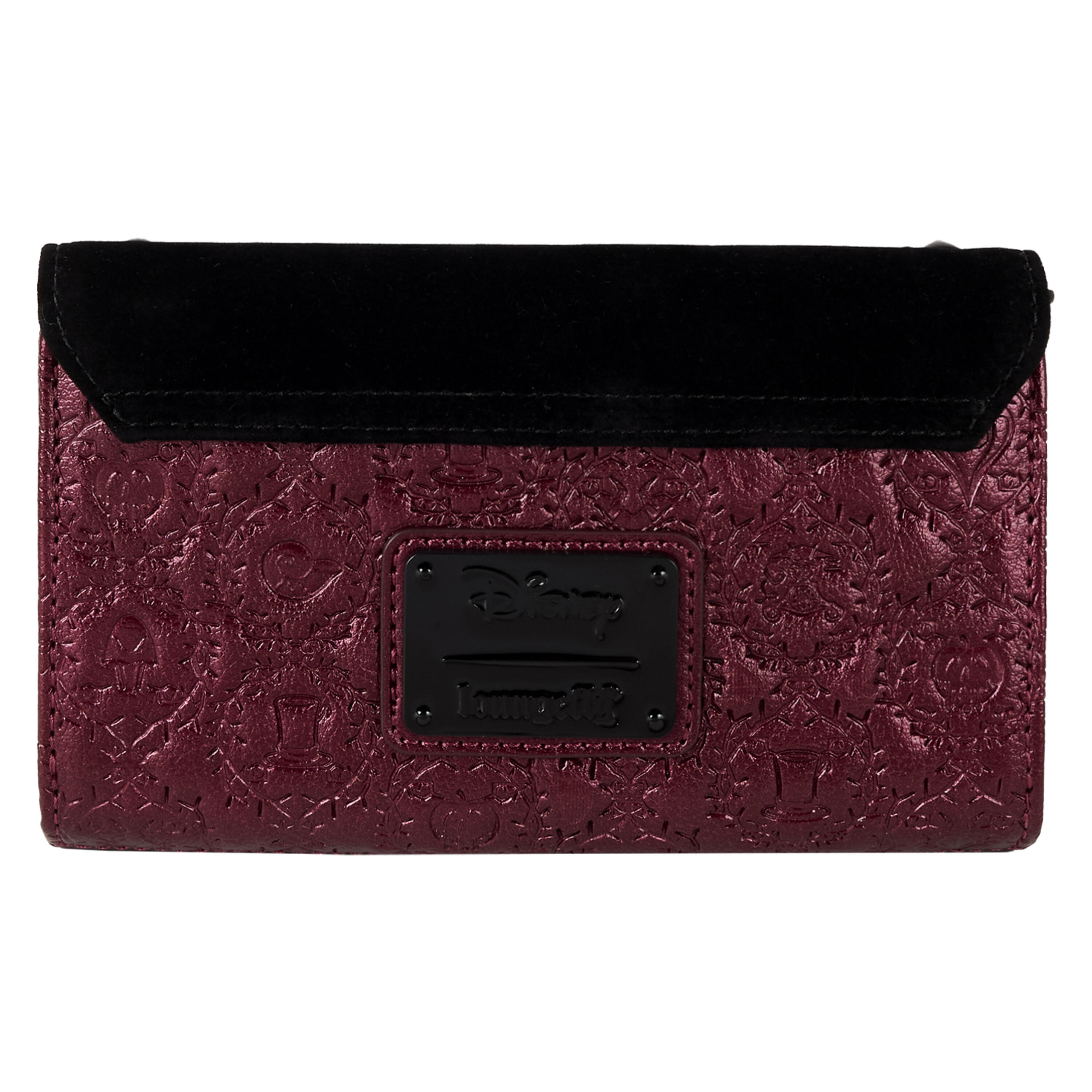 This wallet features metallic faux leather with velvet trim. All over, you'll find symbols of your fav Disney Villains debossed within spiky vines. Inside, there are seven card slots and one clear slot for an ID.