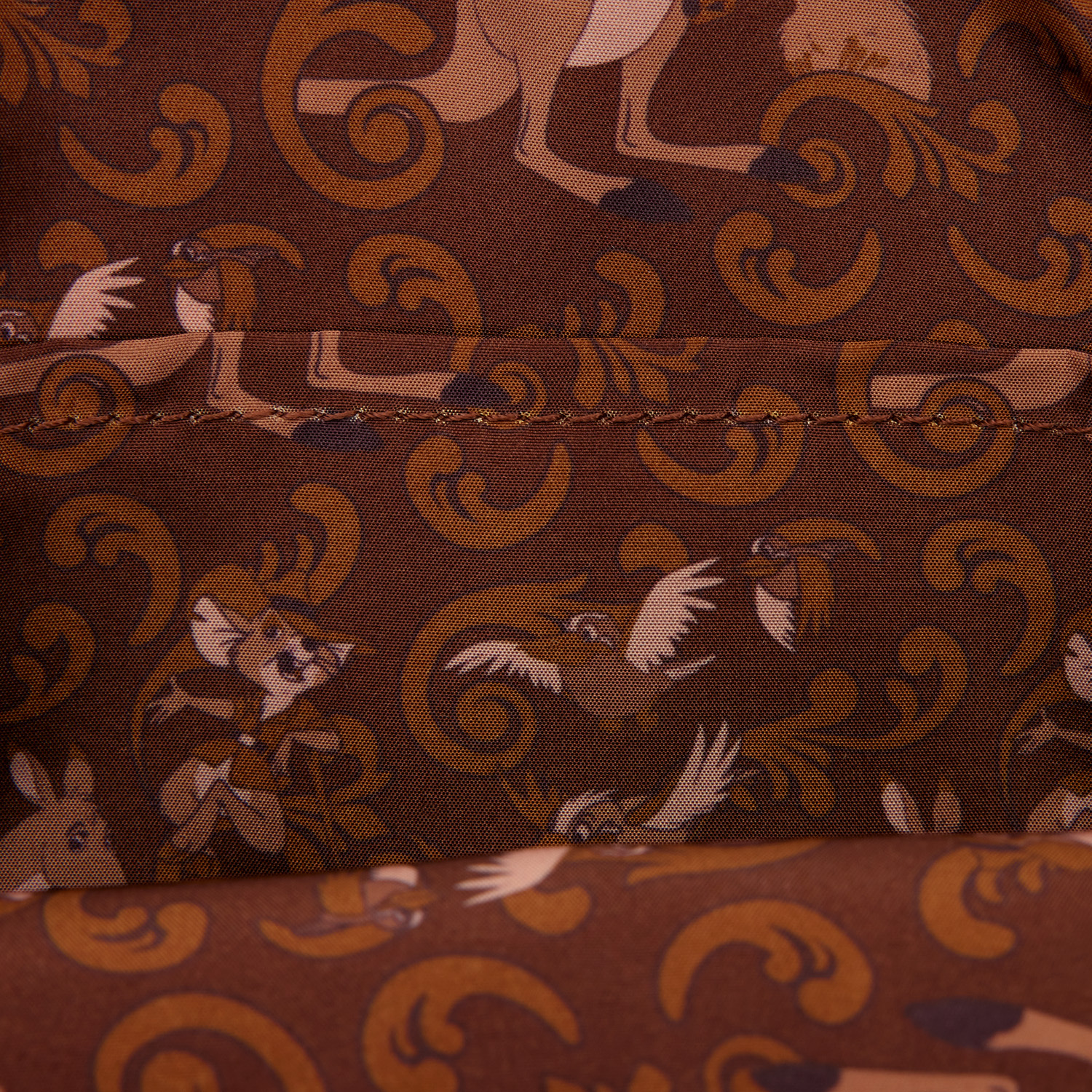 This crossbody is in the shape of a circle and features Frank on the front. Behind him, you'll find debossed designs featuring Bernard and Miss Bianca. Frank's neck frill extends out and up to cover the front of the bag. Turn the bag around to find more debossed detailing, including the silhouette of an albatross.