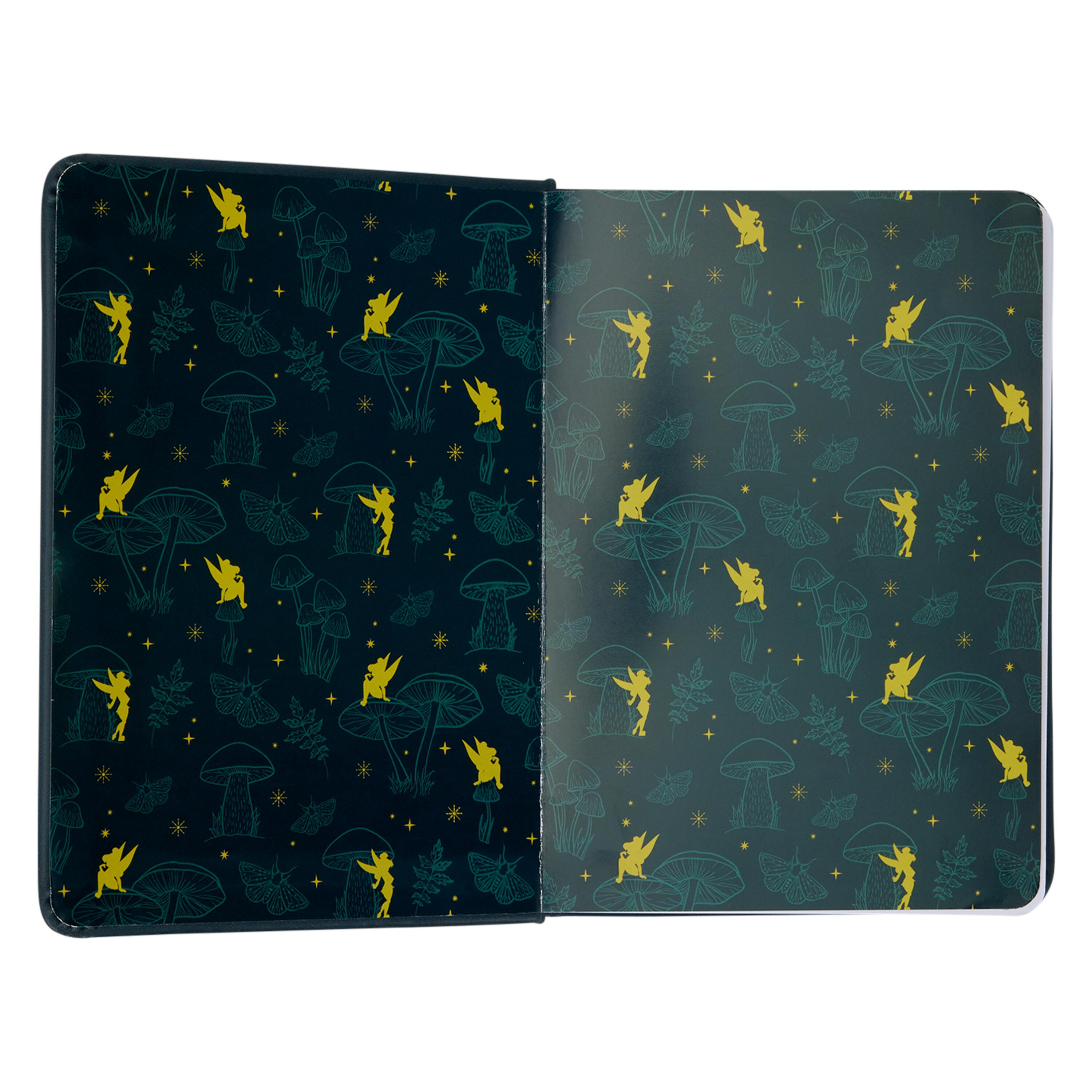 This journal features Disney’s Tinker Bell on the front sitting on a mushroom. Butterflies fly around her. On the back, you'll find another image of Tinker Bell surrounded by more butterflies. This journal features lined pages with images of Tinker Bell and mushrooms in the corners. When you finish filling up the journal, you can buy a paper refill and keep using it!