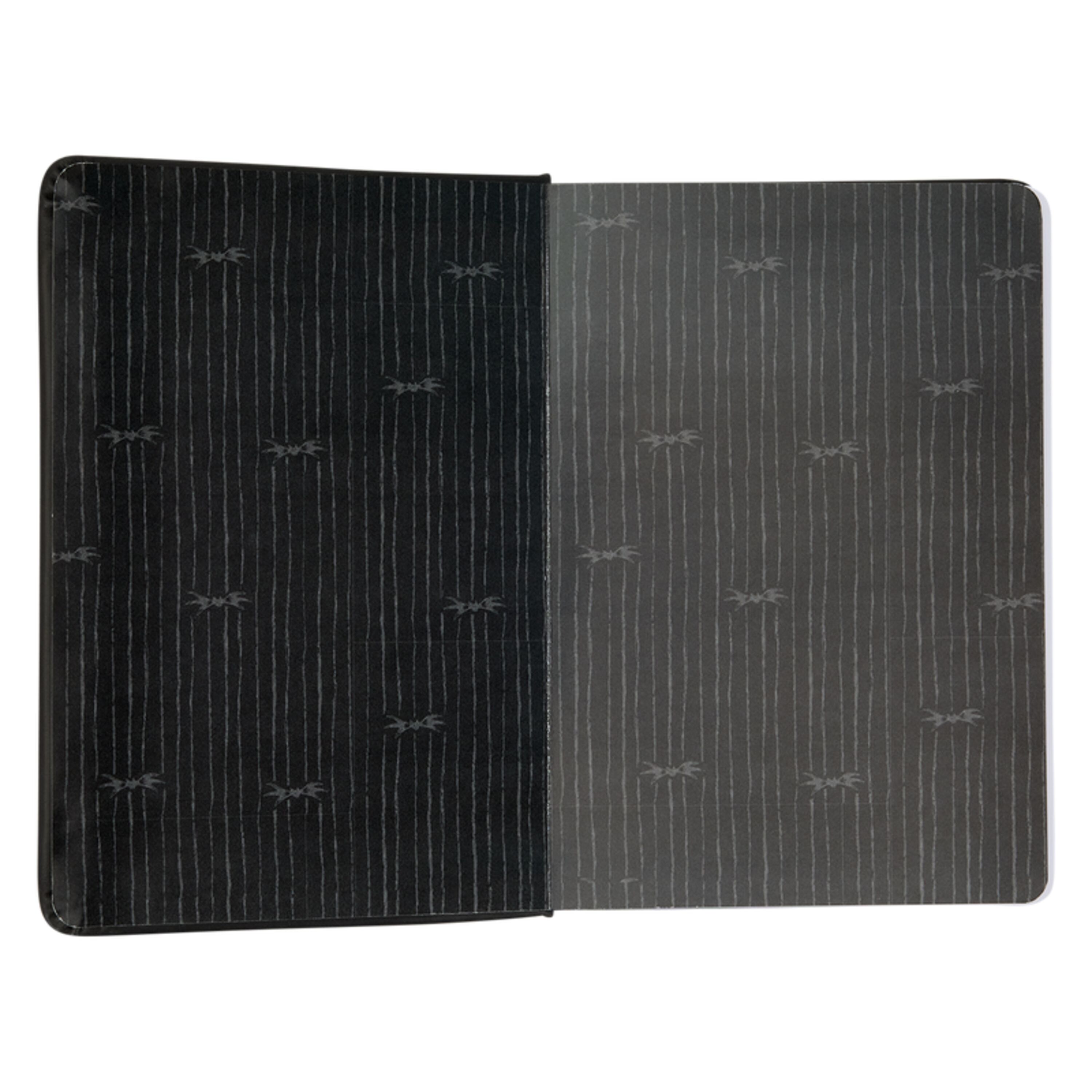 This notebook is inspired by Jack Skellington from Disney Tim Burton's The Nightmare Before Christmas. On the front, you'll find Jack with Zero. Turn it around to find "Pumpkin King" written on the back beneath some jack-o'-lanterns! Within, there are lined pages with images of Jack Skellington!