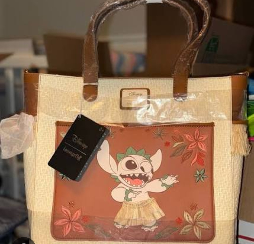 Show off your love for Stitch and Angel with this exclusive LoungeFly tote bag. Featuring a vibrant design with Stitch and Angel, this tote bag combines playful Disney charm with practical functionality. Made from high-quality materials, it is both durable and stylish. The bag includes a spacious main compartment, a secure zipper closure, and a small internal pocket for essentials. Perfect for everyday use, shopping trips, or as a collectible for Disney fans.