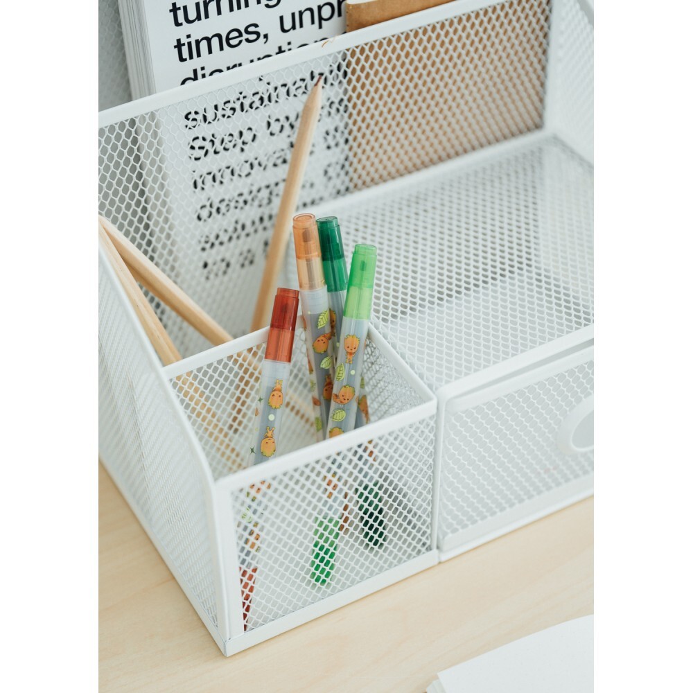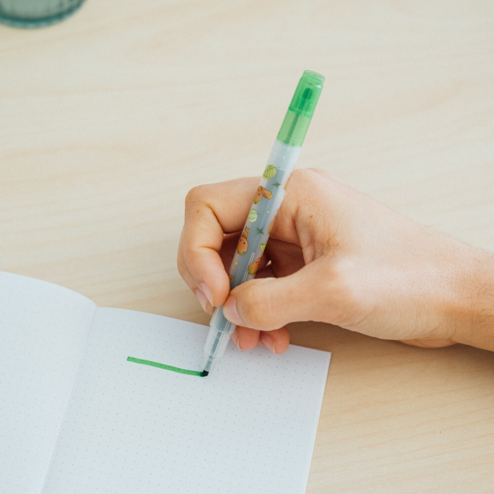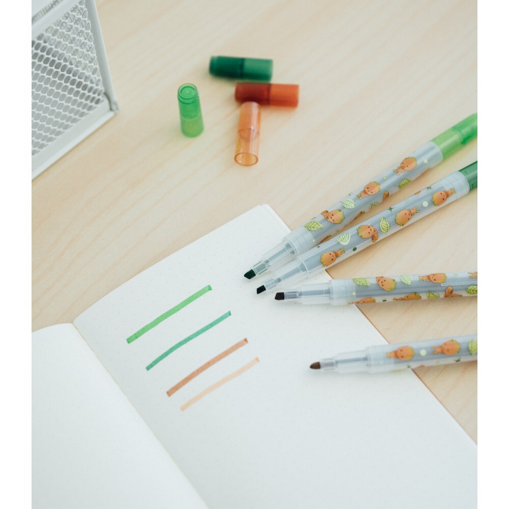 It contains 4 highlighters with two different sized tips. It includes a PVC case.