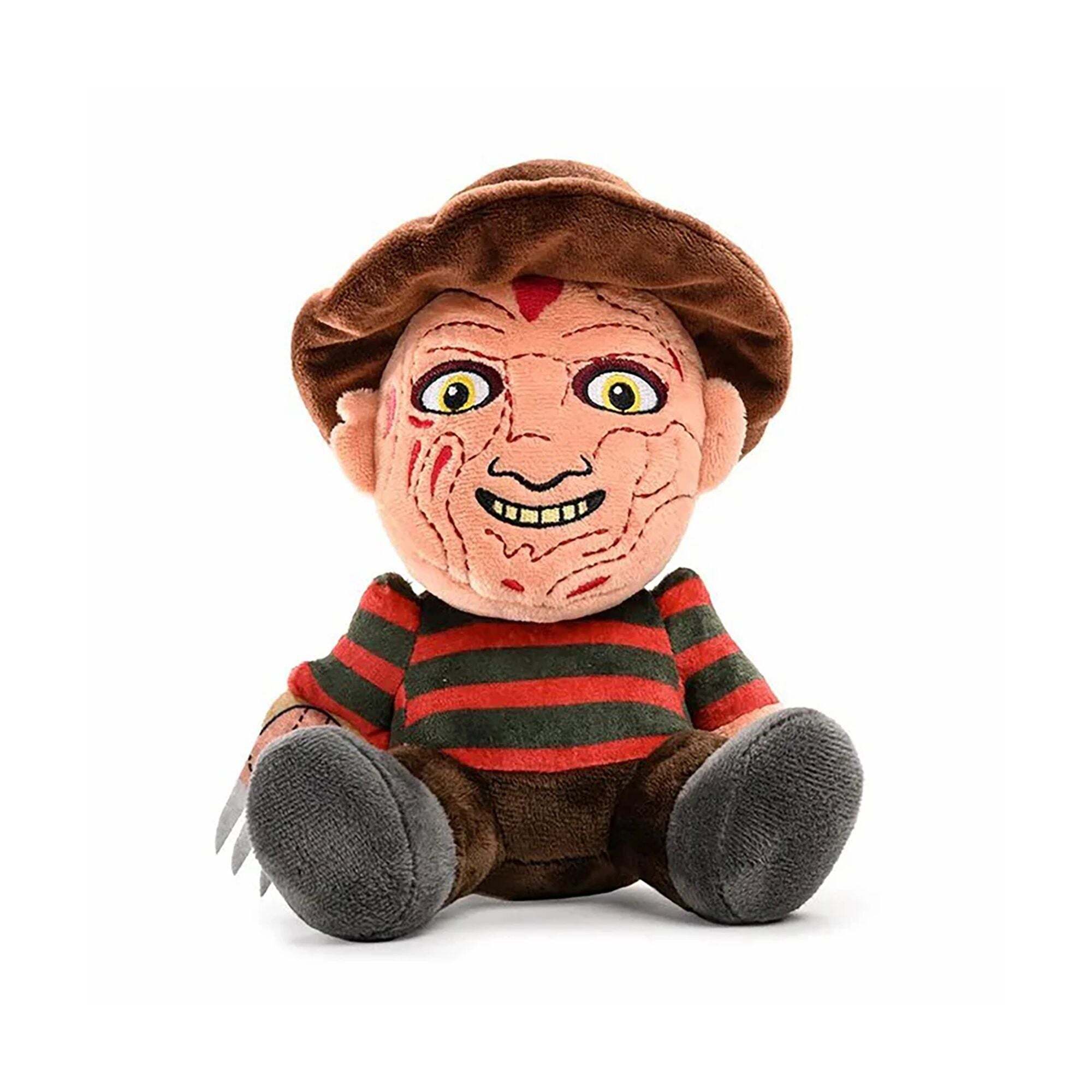 Fight to stay awake while cuddling this iconic plush toy from the movie A Nightmare on Elm Street, or face the terrifying yet surprisingly soft Freddy Krueger. With his burned face, signature striped sweater, and bladed glove, this plush toy is ready to join your horror plush collection. Not suitable for children under 3 years (choking hazard due to small parts). Height: 20 cm
