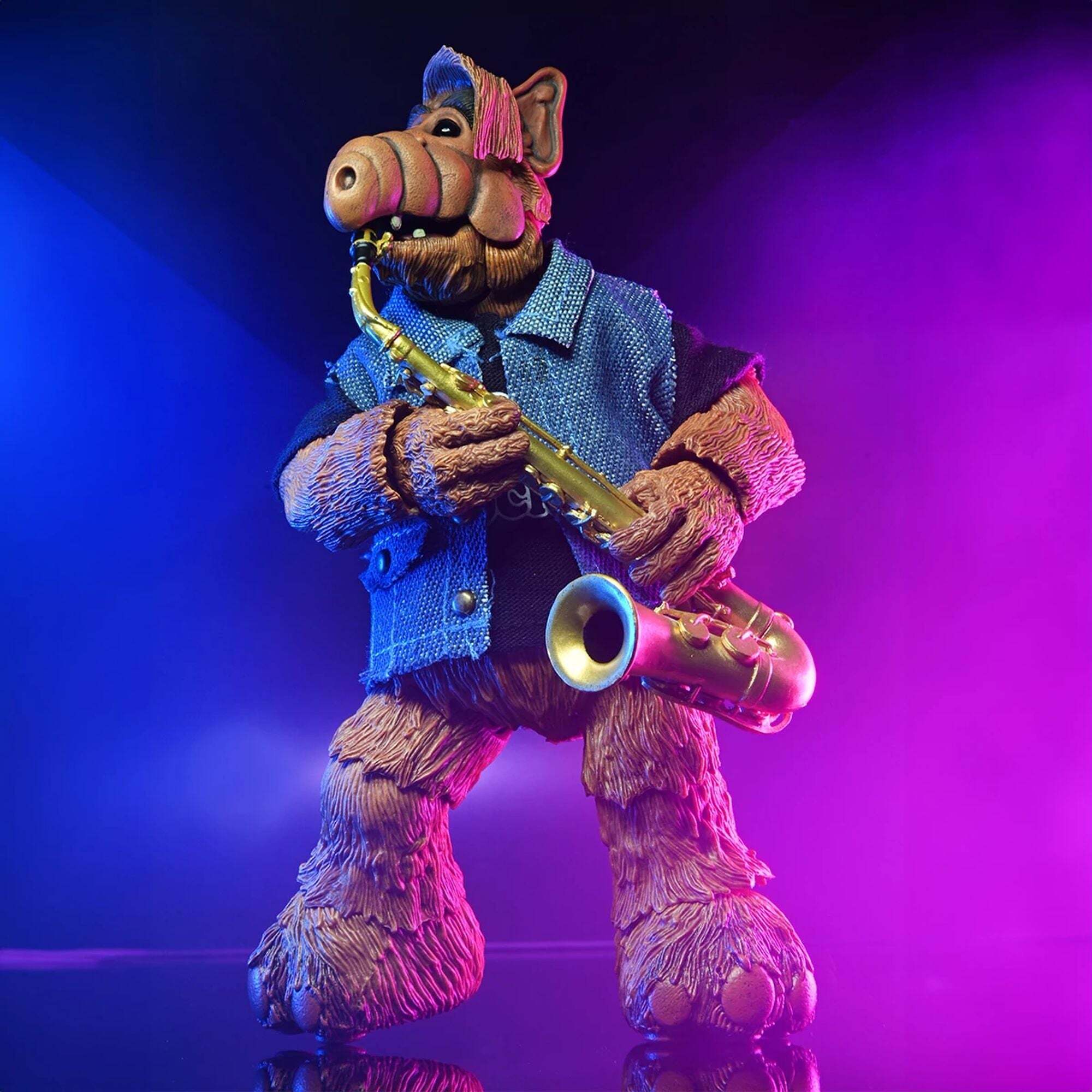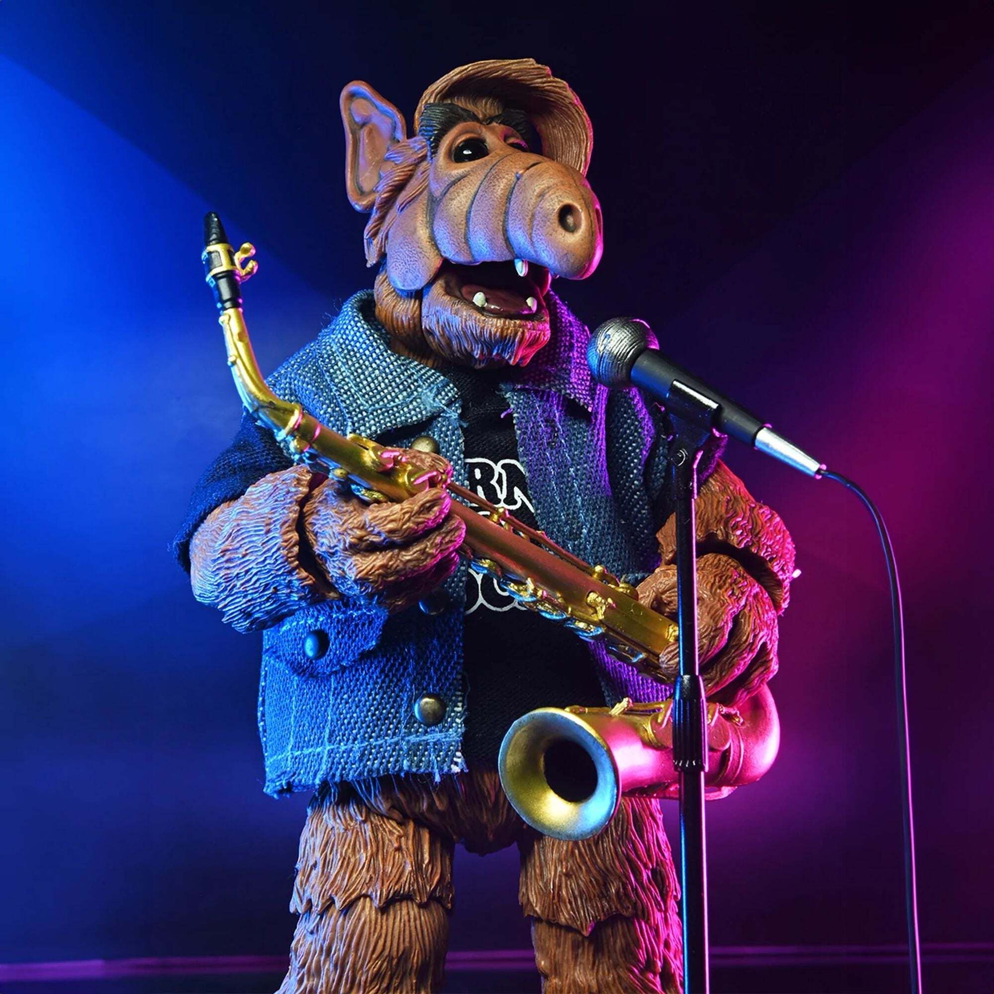 ALF, the beloved icon of 80s sitcoms, is stepping into the spotlight. This NECA Ultimate action figure stands nearly 6.75 inches height and comes dressed in a tailored shirt and vest. It also includes an array of accessories: multiple interchangeable hands, a movable jaw, a microphone with stand, a guitar with strap, a saxophone, a record with a sleeve, and sunglasses. It comes in collectible packaging. Height: 17.5cm