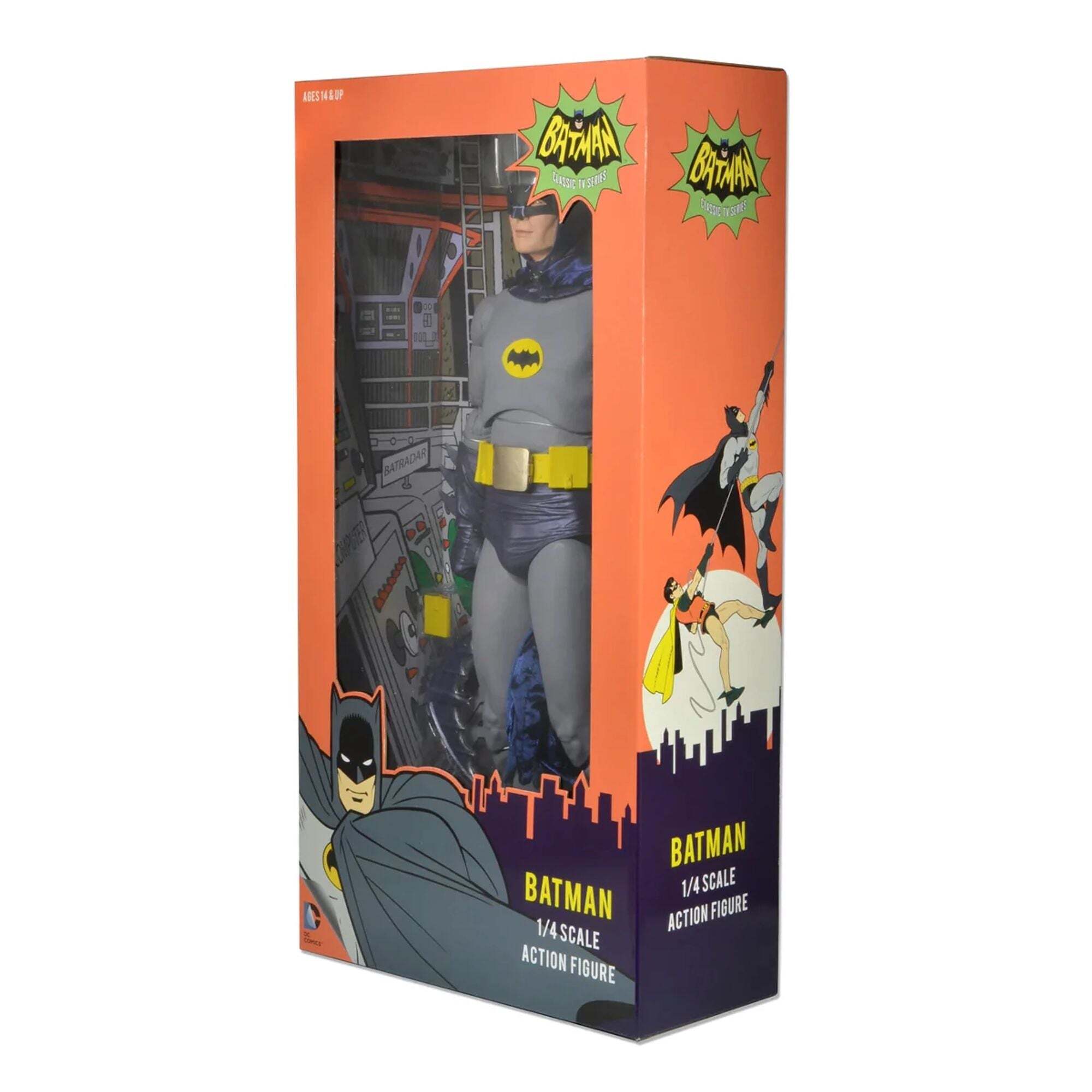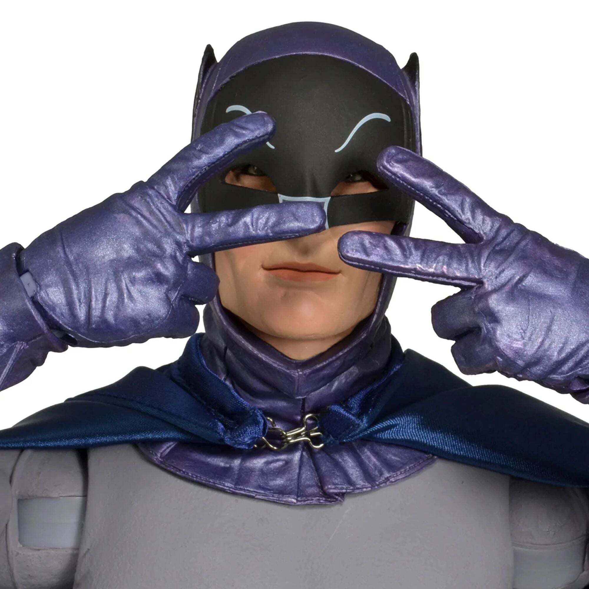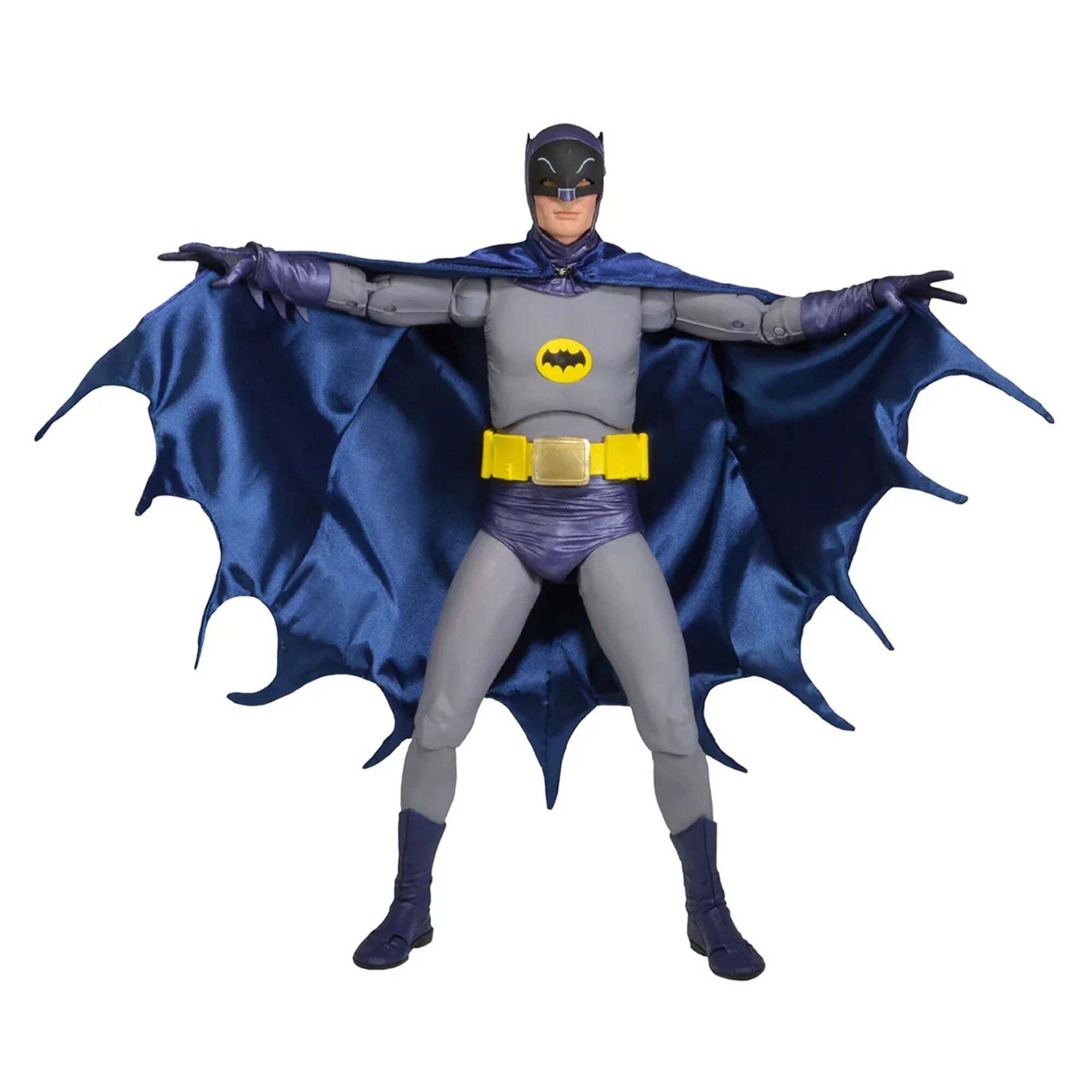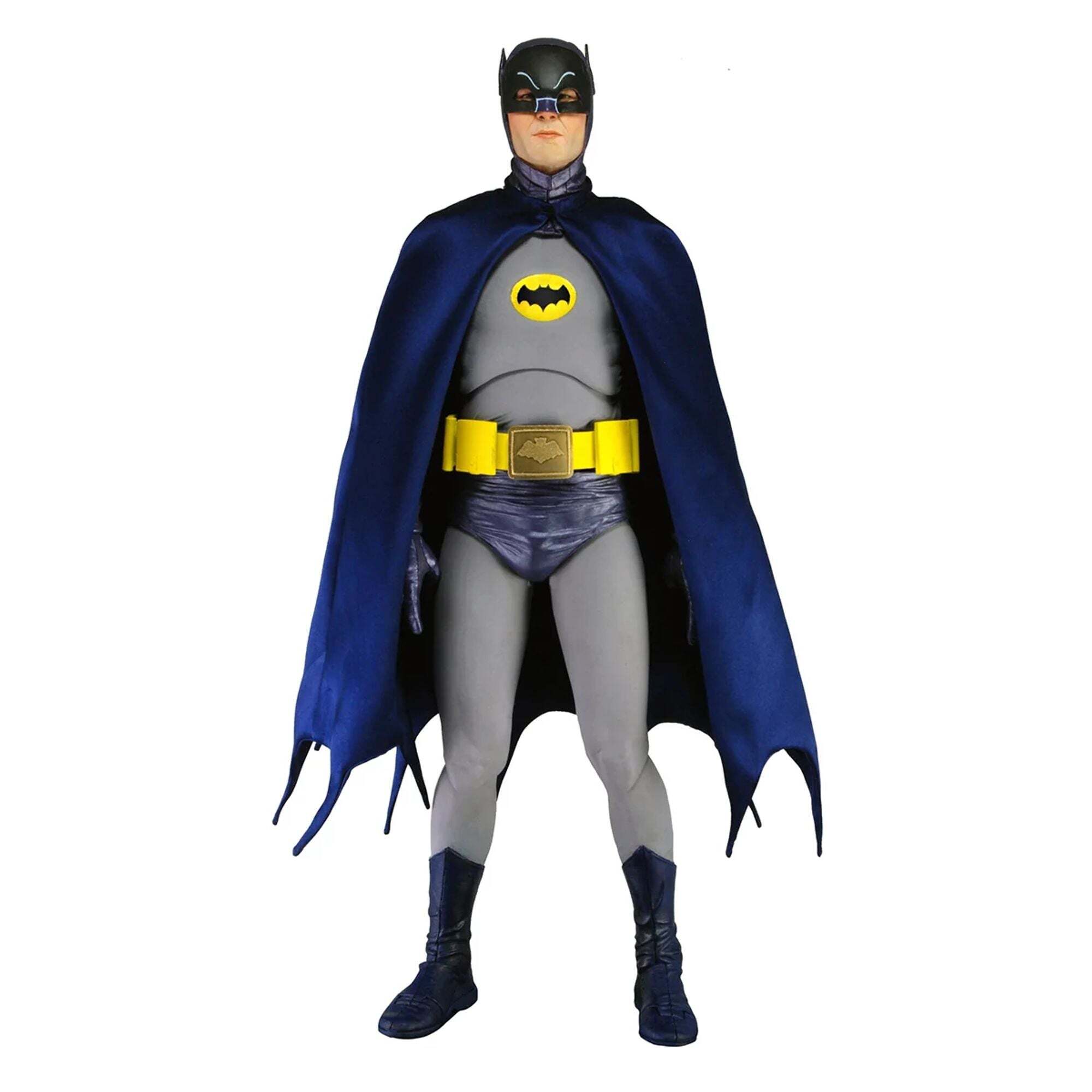"For nearly 50 years, the Batman television series has captivated generations of viewers, and for many, Adam West remains the iconic face of the Dark Knight. We grew up with this iconic version of Batman, and it's an honor to offer this 18-inch articulated figure, faithful to Adam West's appearance. It includes a real multi-function belt, interchangeable hands, and many additional accessories." Height: 18 inches