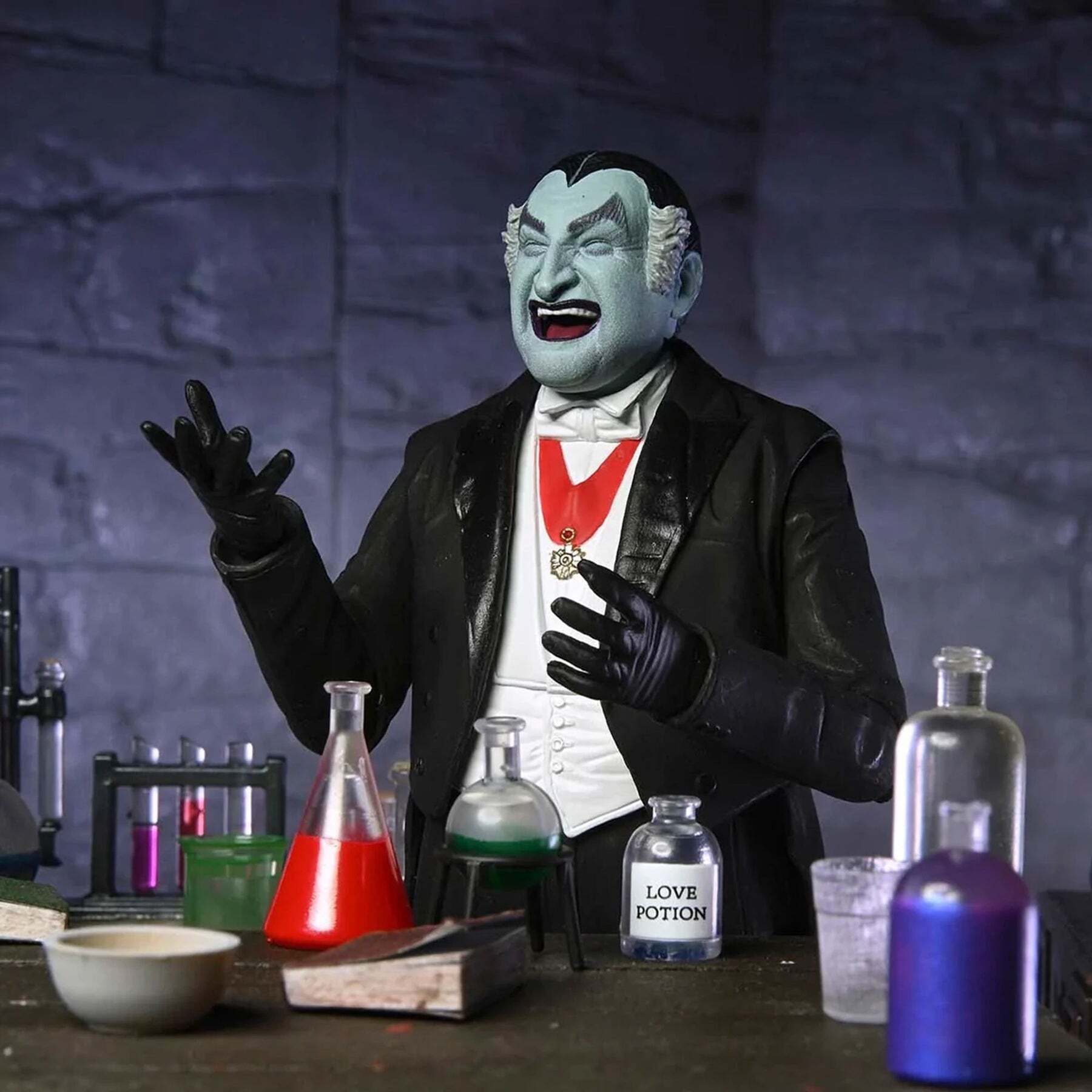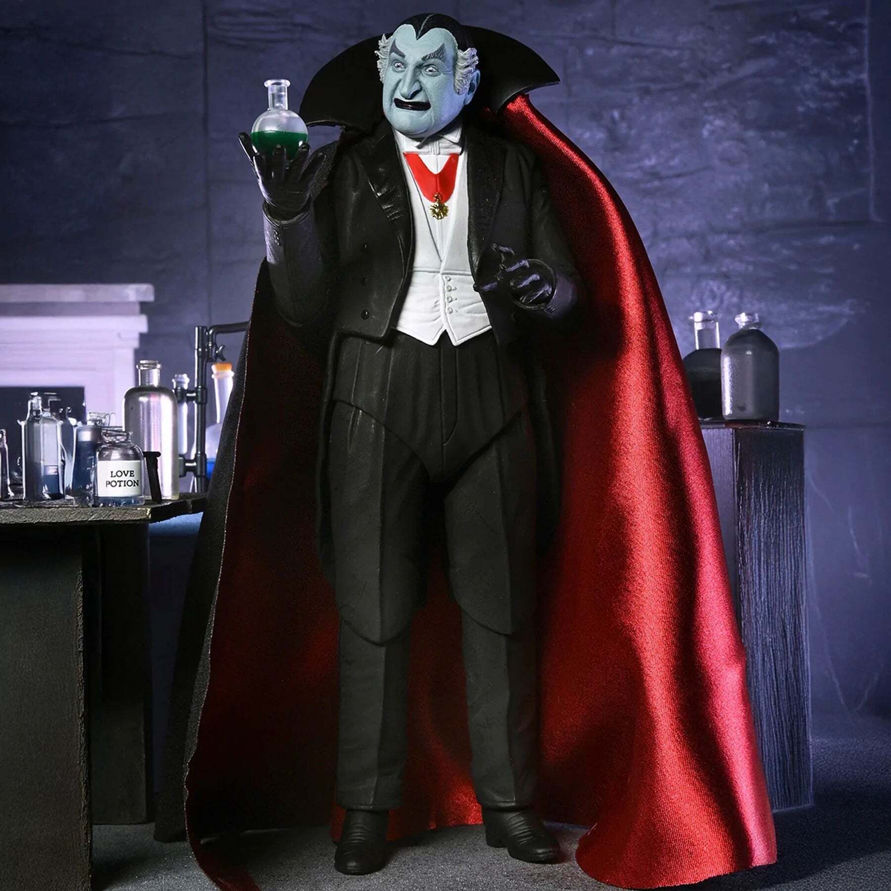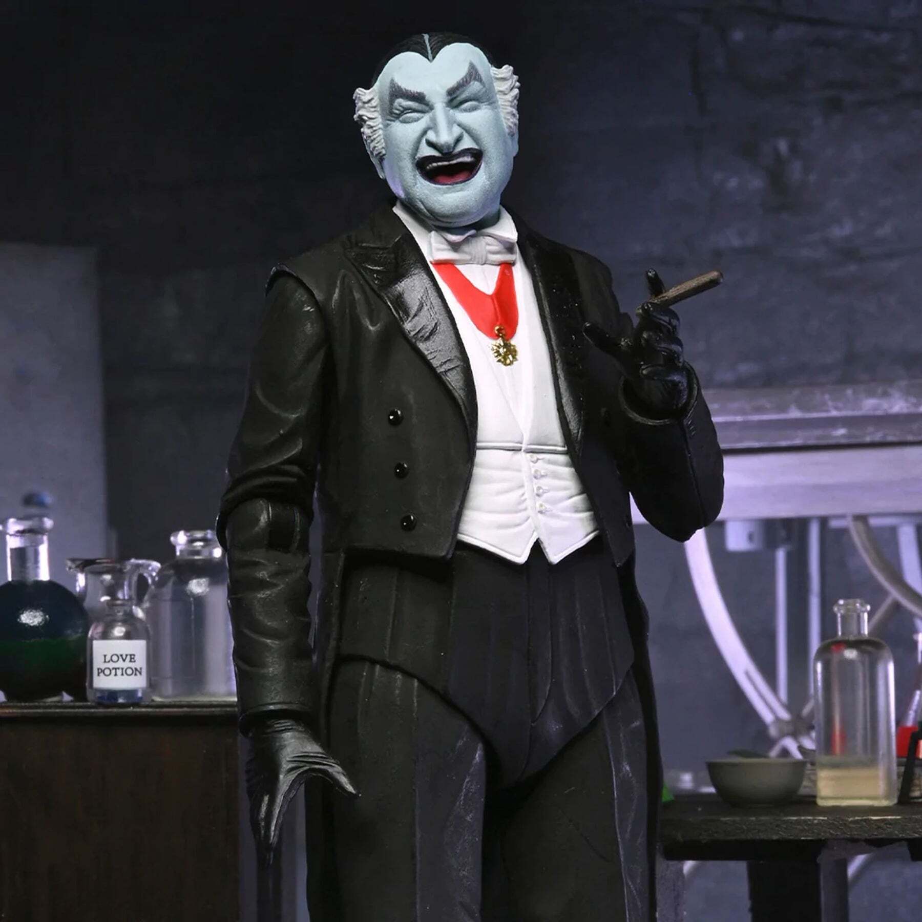 Enter 1313 Mockingbird Lane with the NECA Ultimate Grandpa Munster Figure! Inspired by the classic 1960s sitcom, The Munsters, this highly detailed, 18cm scale articulated figure captures the mischievous charm of TV's beloved vampire. Height: 18cm
