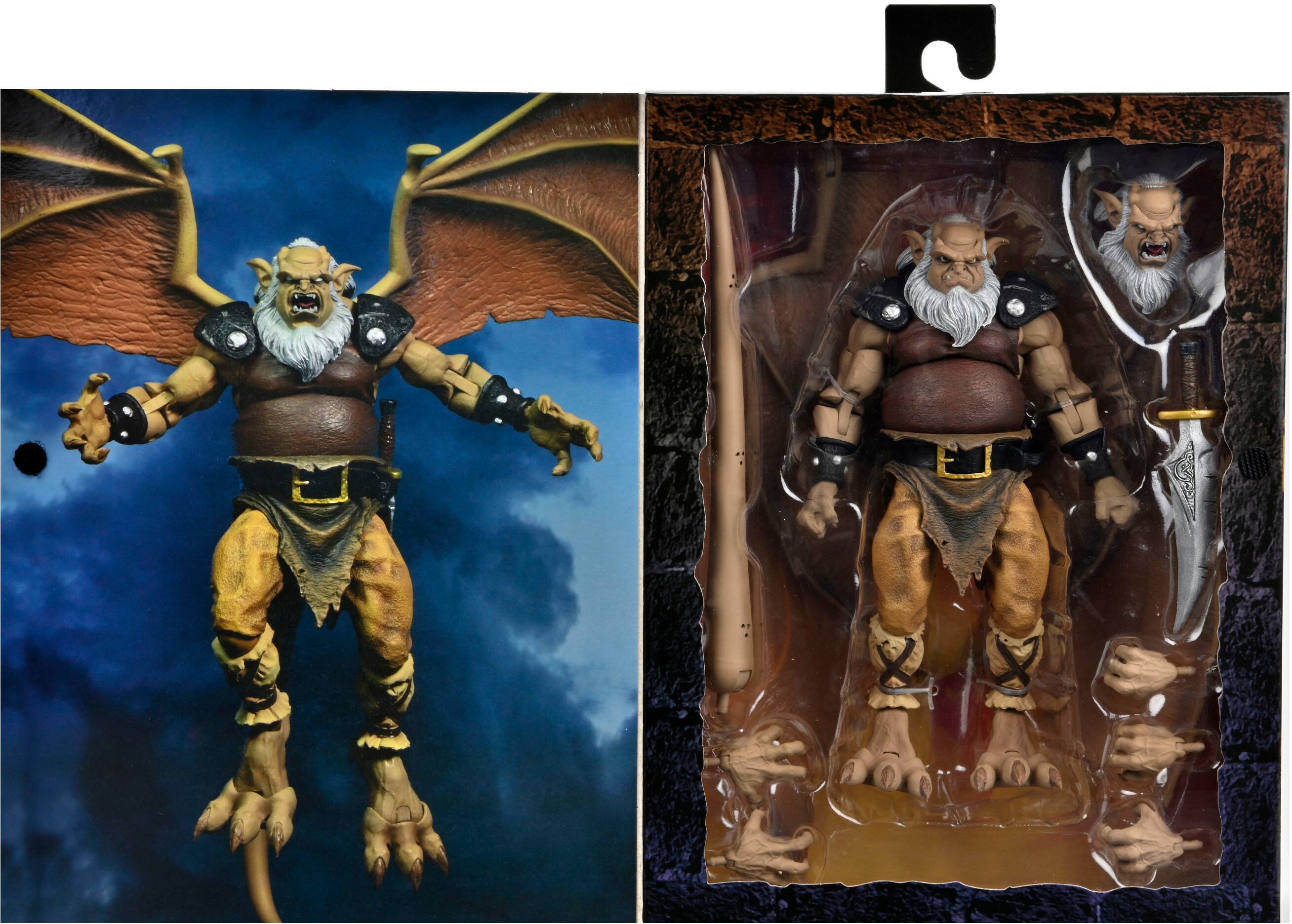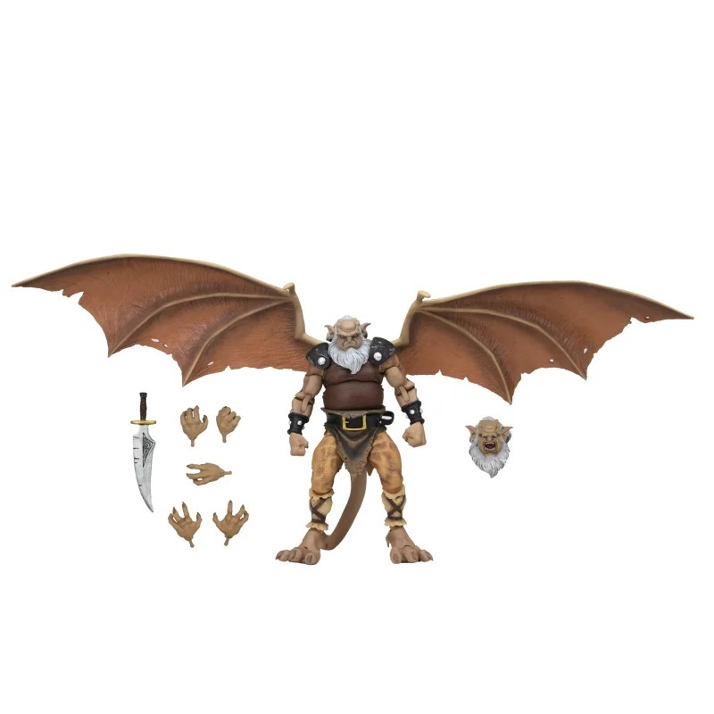 "A thousand years ago, superstition and the sword reigned..." The time of the Gargoyles has returned! A true cult classic of the 1990s, Gargoyles follows an ancient clan of gargoyles transported to modern-day Manhattan after their Scottish castle is relocated. Hudson, once the clan's leader before passing the mantle to Goliath, is an experienced, wise, and cunning warrior, despite being blind in one eye. Always ready for battle (and a huge fan of Celebrity Hockey), he remains a pillar of the group. This fully articulated figure stands approximately 20 cm tall and features articulated wings and tail, an alternate roaring head, a sword, and several interchangeable hands. Presented in a collector's display box with an illustrated flap. Height: 18 cm
