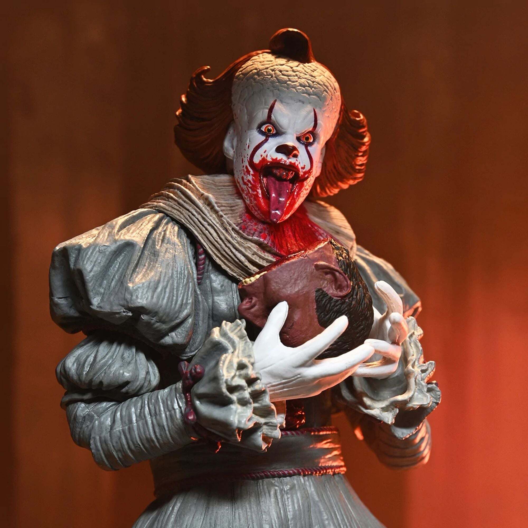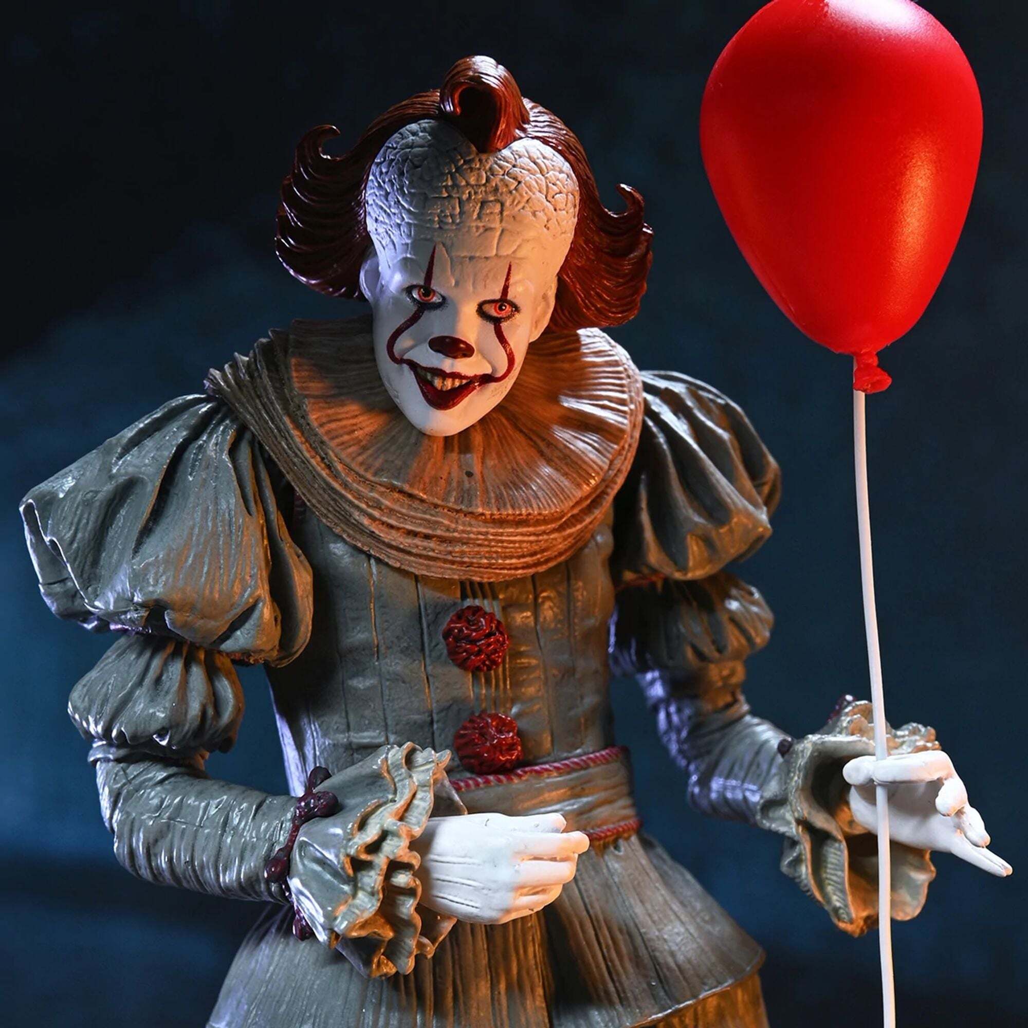 This Ultimate version captures every detail of the costume, the terrifying makeup, and the evil expression of the famous clown. Fully articulated, it's perfect for collectors and fans, and can be proudly displayed thanks to its faithful design.