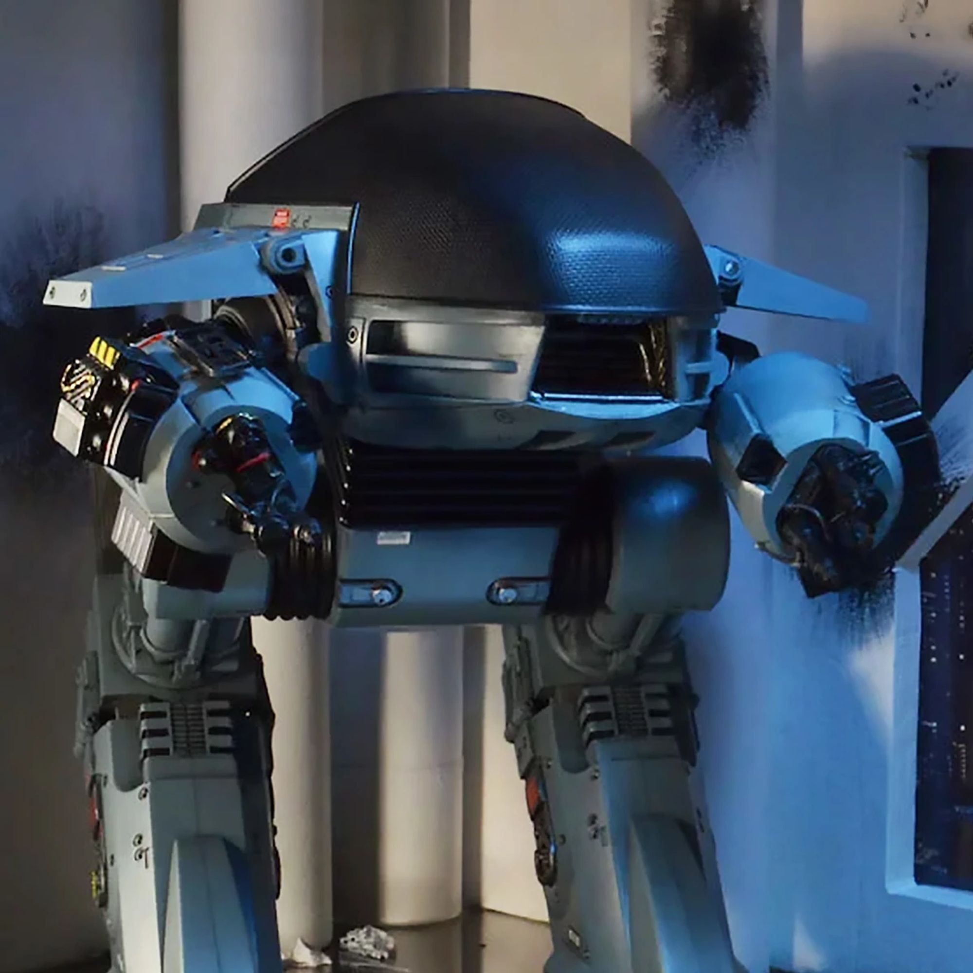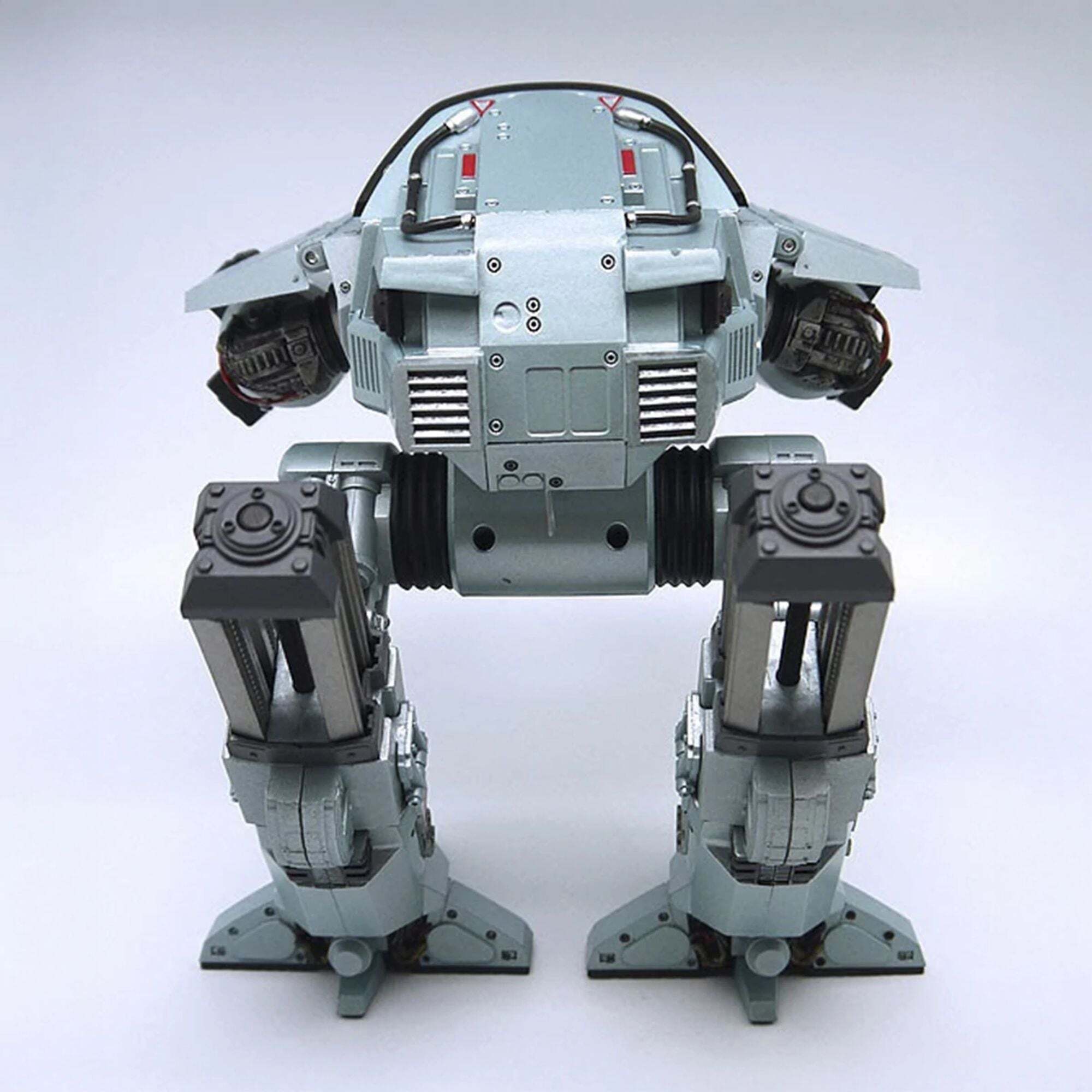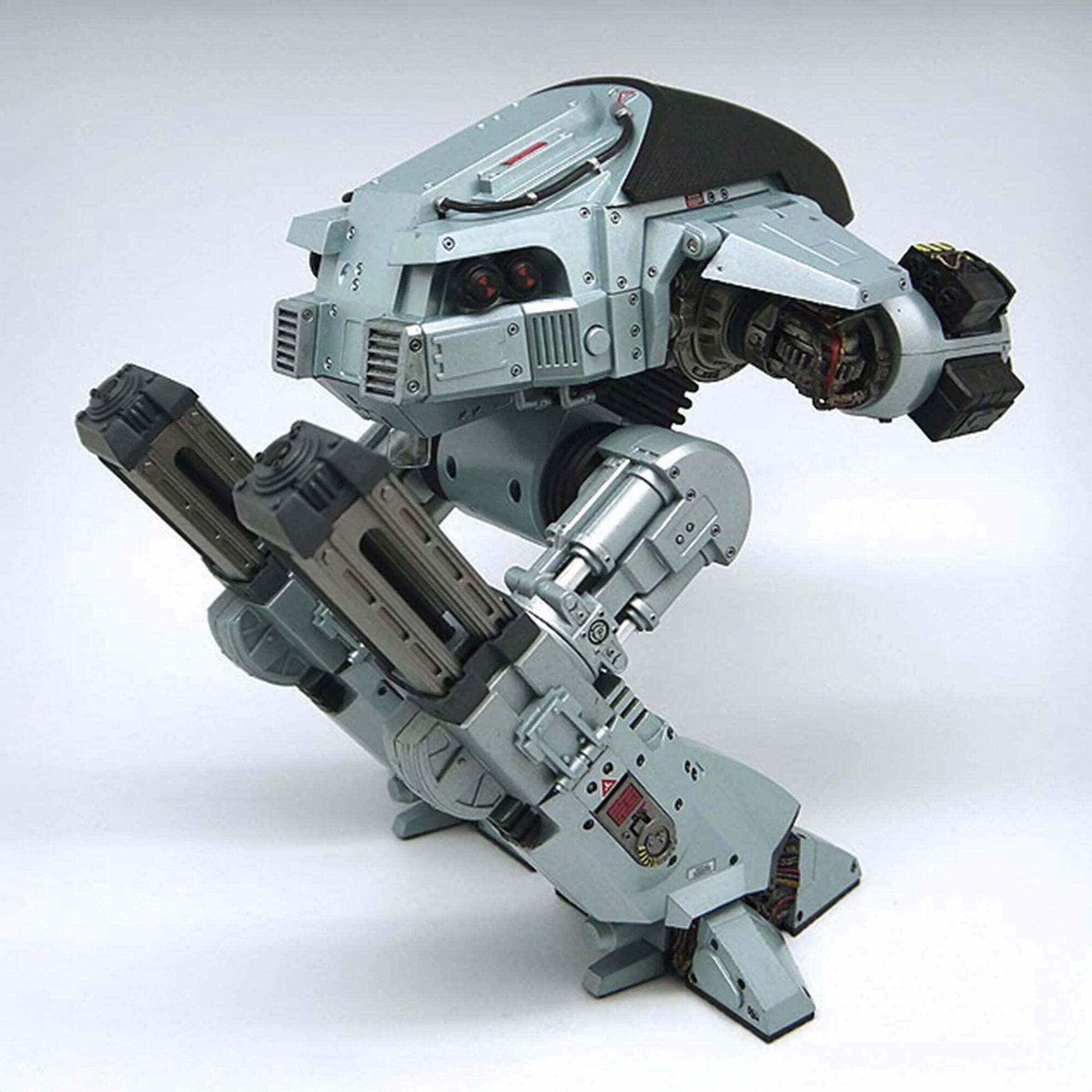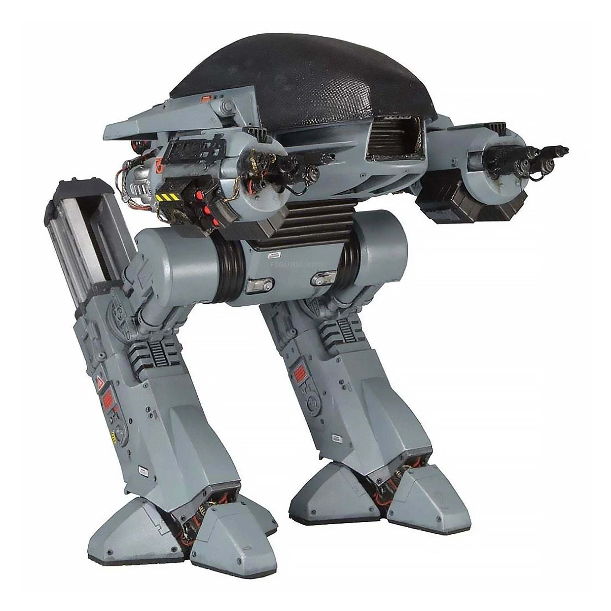 The future of law enforcement has arrived! Straight from the original RoboCop movie, the impressive ED-209 (Enforcement Droid Series 209) stands nearly 25 cm tall and is perfectly scaled to match the 18 cm RoboCop figures (sold separately). A true mechanical behemoth, it finally provides a worthy adversary for the famous cyborg police officer. Fully articulated and boasting exceptional detail, this ED-209 features a rotating head, sliding legs, articulated arm panels, and movable cannons. It also incorporates sound effects and lines from the movie: hydraulic sounds, mechanical noises, and the famous phrase, "Warning: throw down your weapon. You have 15 seconds to comply."