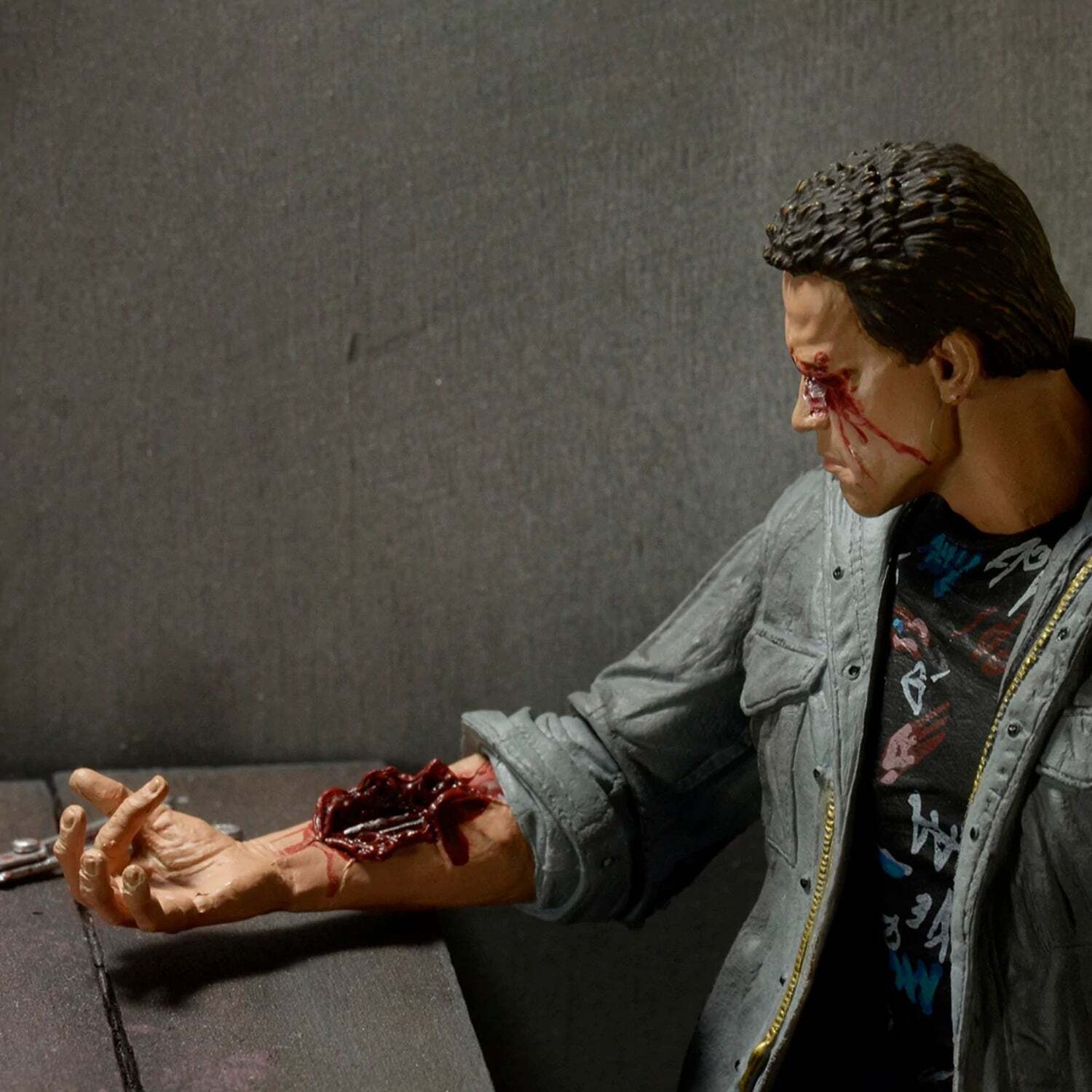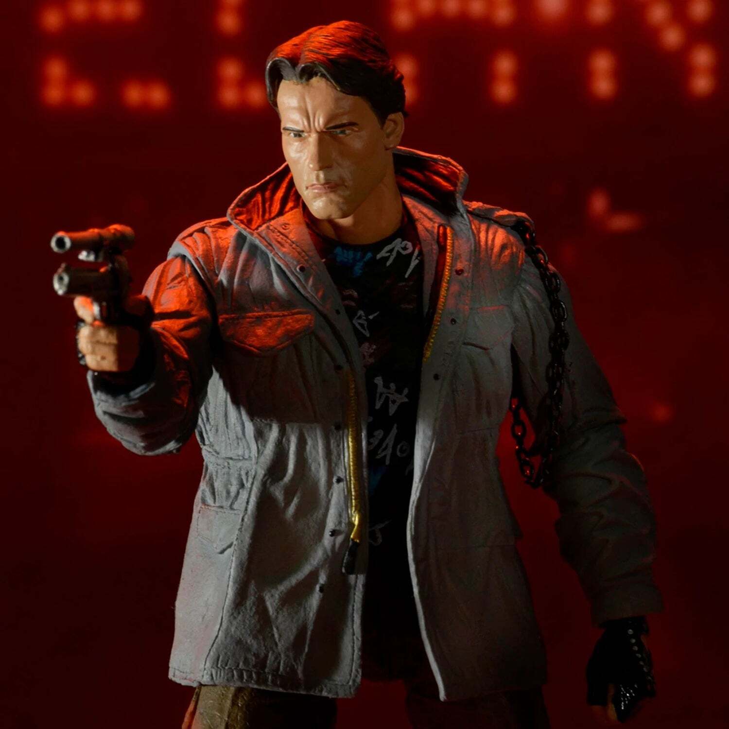 Nothing will stop this machine of destruction from the future—not even the absence of clothes. In the 1984 film Terminator, the T-800 steals period-appropriate clothing from some very unlucky punks before attempting to assassinate Sarah Connor at the Tech Noir club. Height: 18 cm