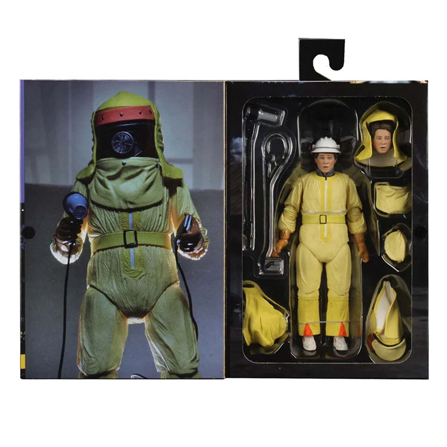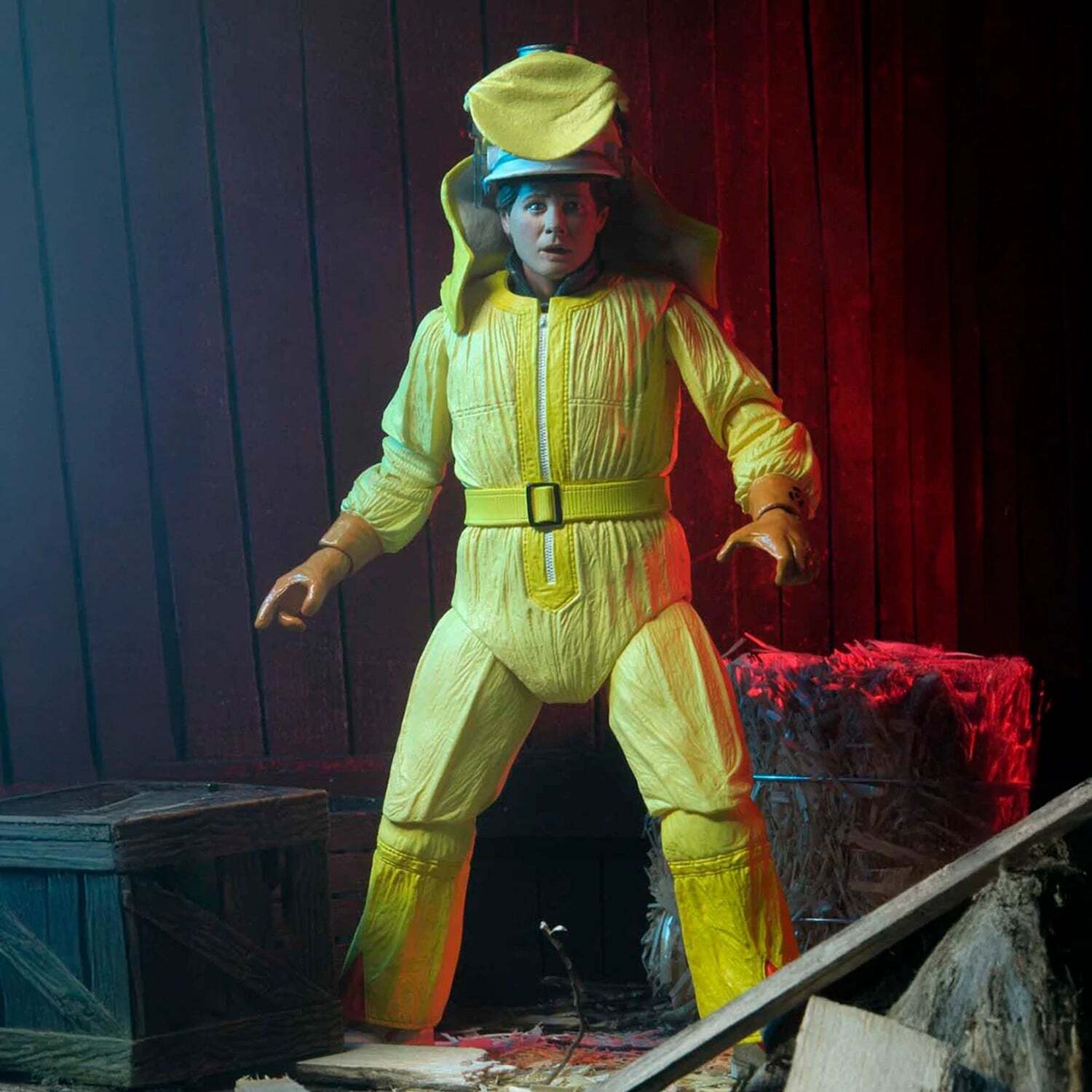 "It's time to go back in time… to 1955! NECA is proud to present the Ultimate "Tales From Space" Marty McFly figure, inspired by the iconic scene from the movie Back to the Future, with the official likeness of Michael J. Fox. Marty is dressed in his hazmat suit, like a visitor from the planet Vulcan, and equipped with his hairdryer and terrifying "brain fusion device" (cassette player). The figure also includes interchangeable heads and hoods to recreate his different expressions. All of this is presented in a window box, ideal for collectors." Height: 18cm