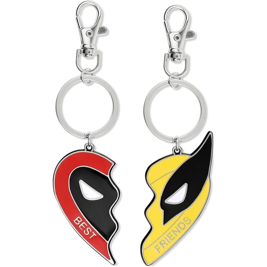 Get your hands on these awesome Deadpool and Wolverine best friends keyrings inspired by the Deadpool & Wolverine movie and show your love for this legendary superhero duo. A must have for any Marvel fan. Keep your keys safe and fashionable with these key rings, featuring a heart design that splits in two finished with a lobster claw clasp closure.