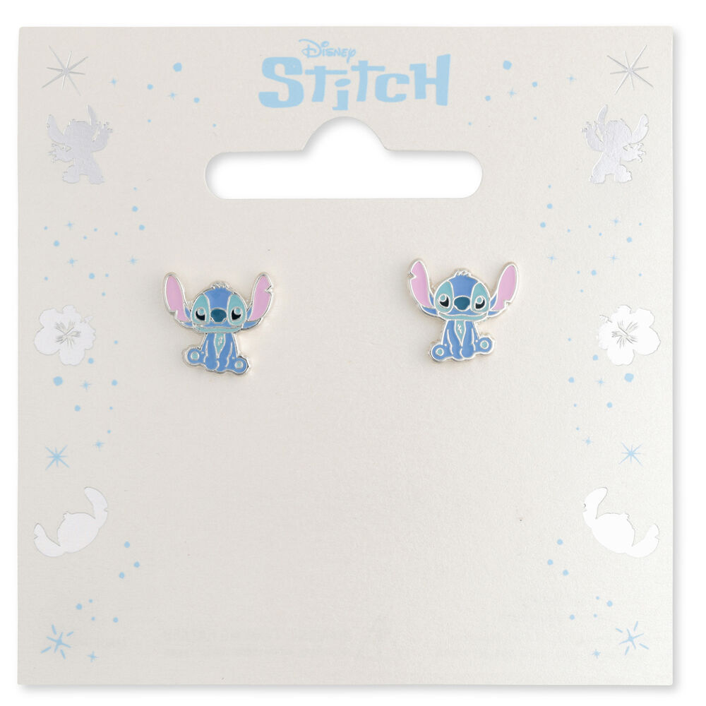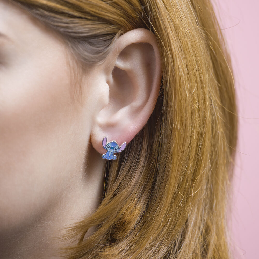 These colourful silver enamel earrings feature Stitch himself.
