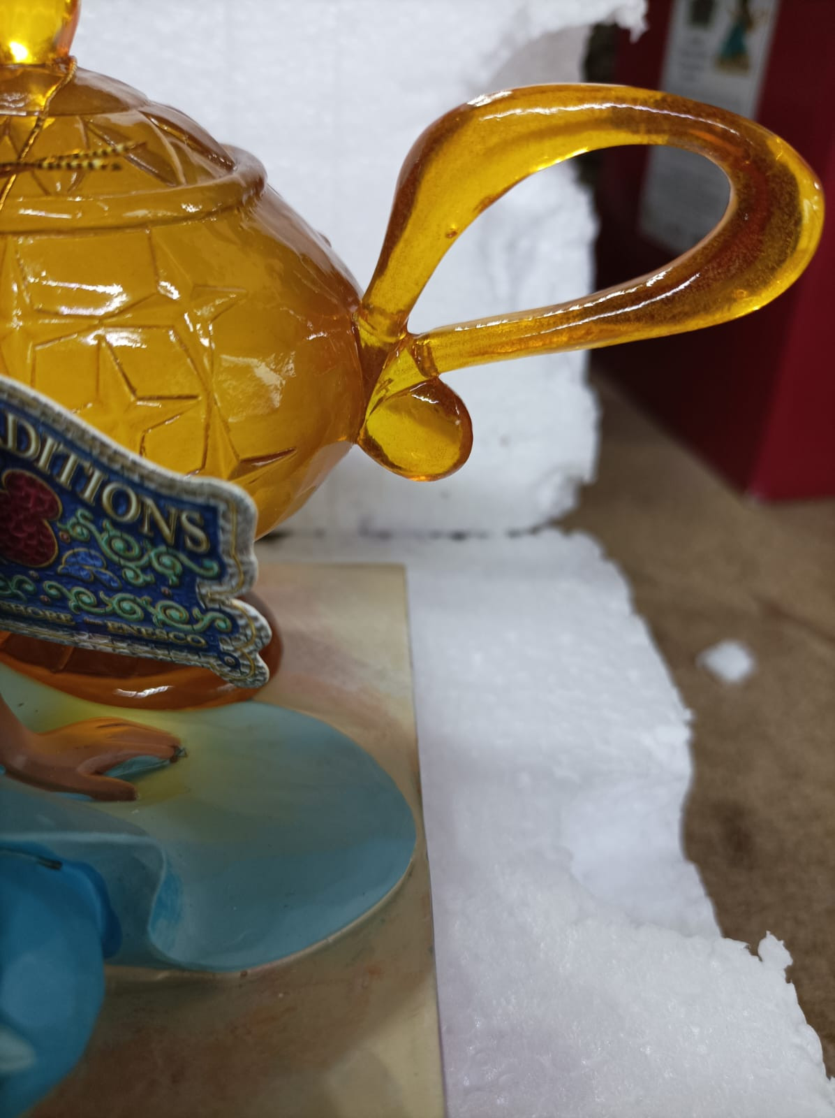 - The handle of the genie's lamp was broken, it was glued back together