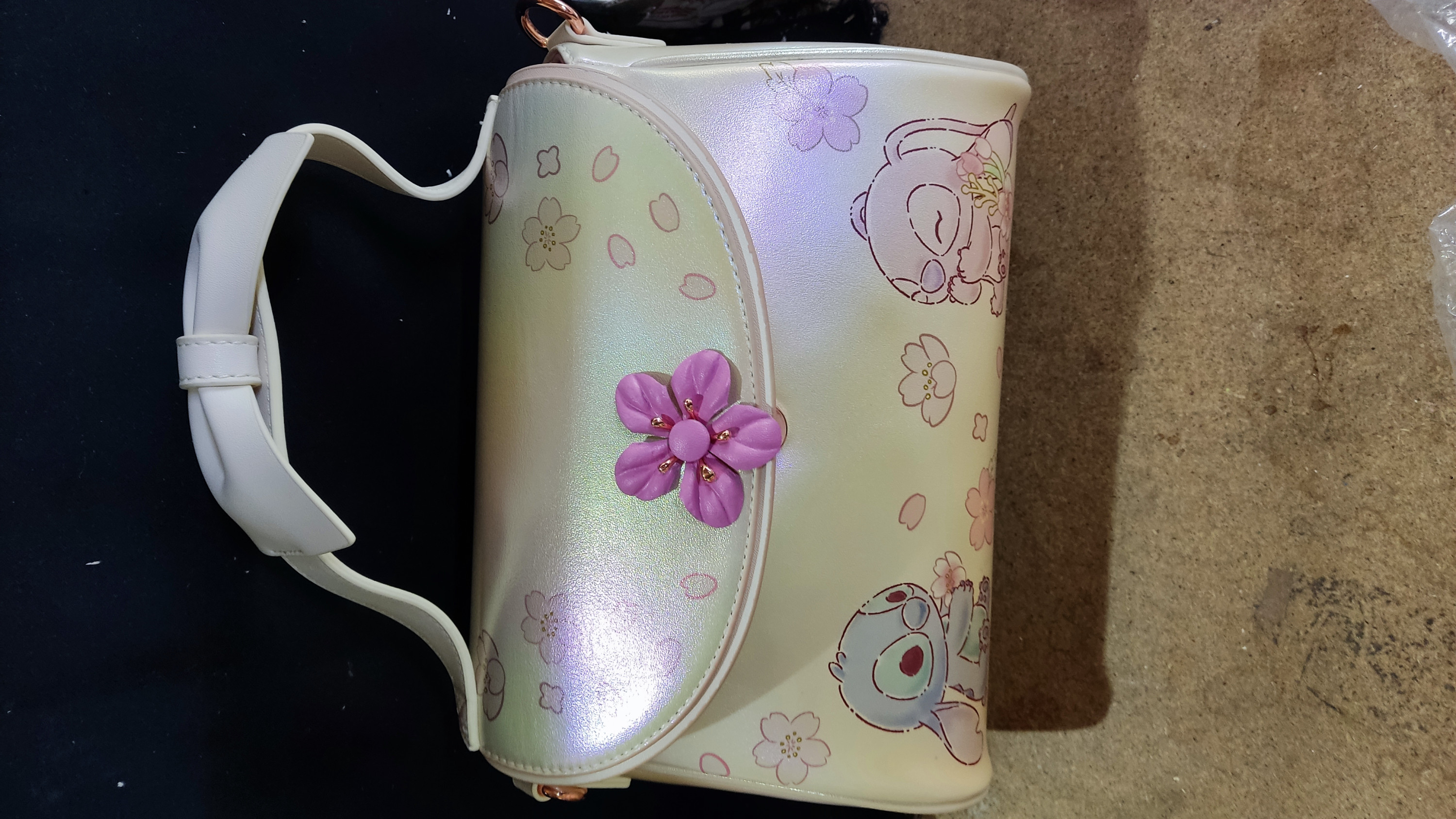 [Defect] Stitch & Angel Cherry Blossom Bow Handle Crossbody Bag - Disney Loungefly