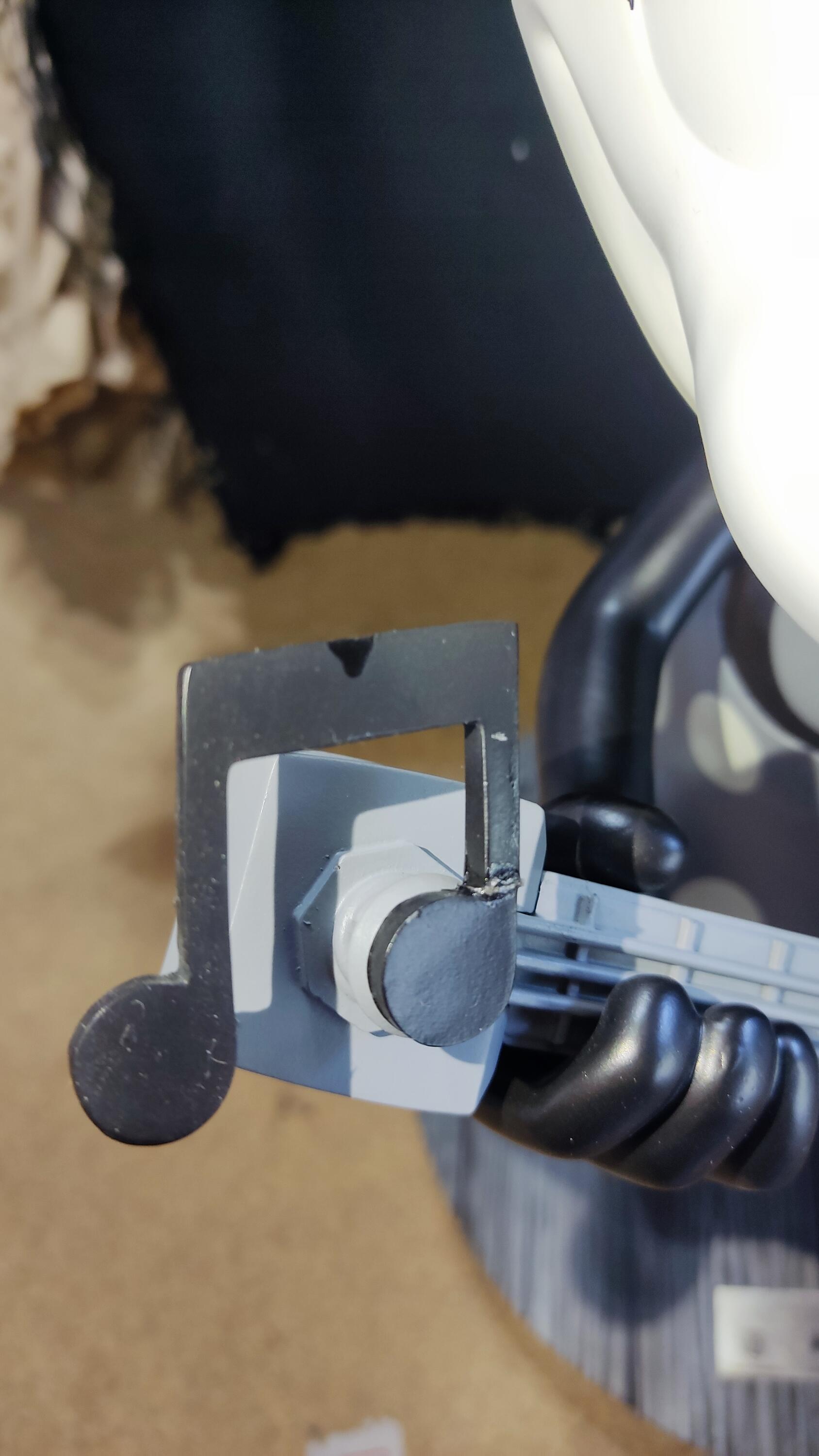 - The musical note has been reattached; a slight trace of glue is visible