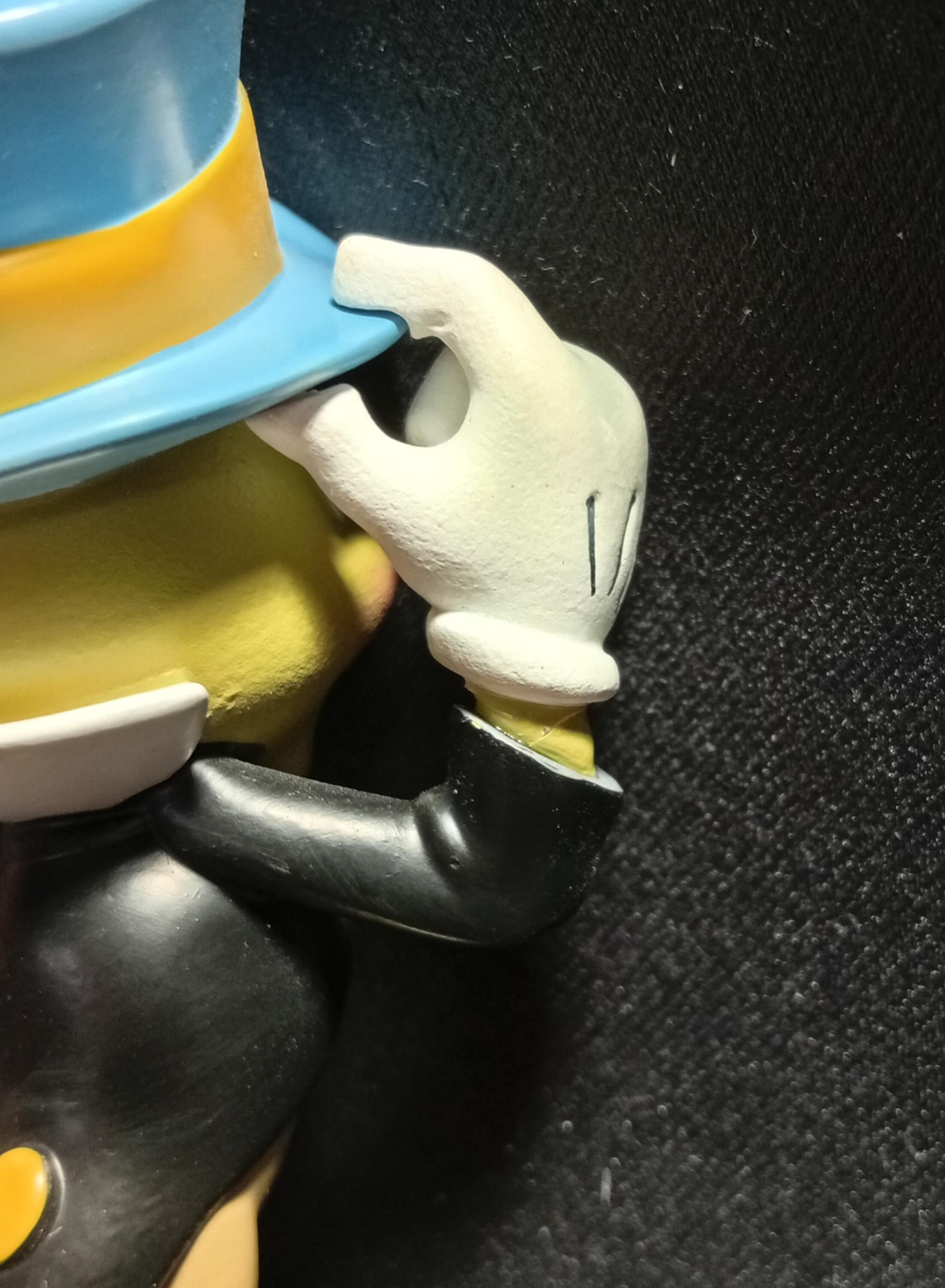 - Jiminy Cricket's leg, hand, and umbrella have been glue back together