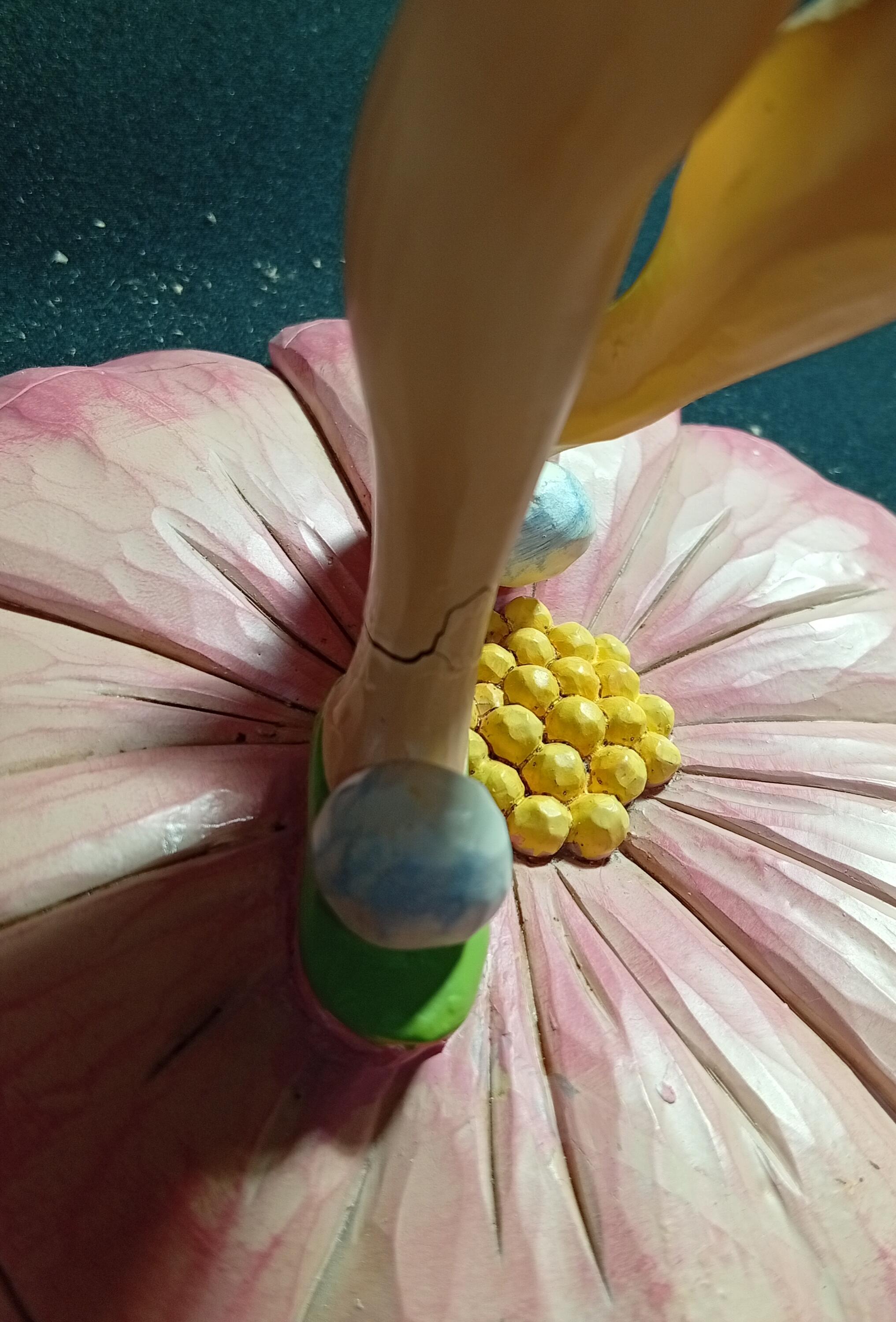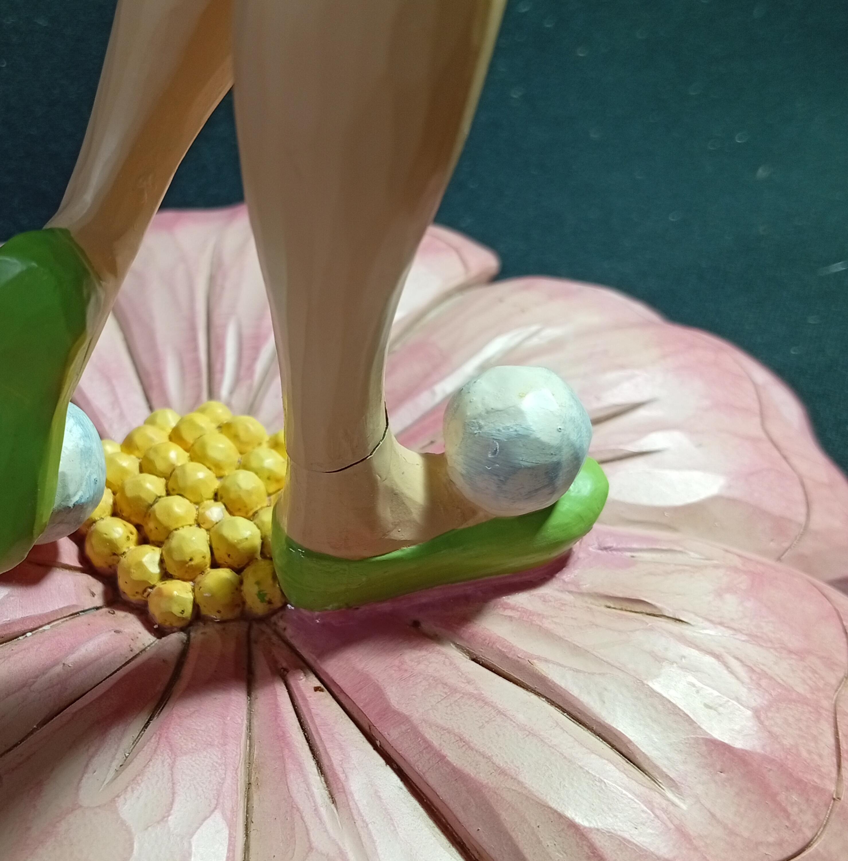- Tinkerbell's right foot is broken. It has been reinforced with glue.