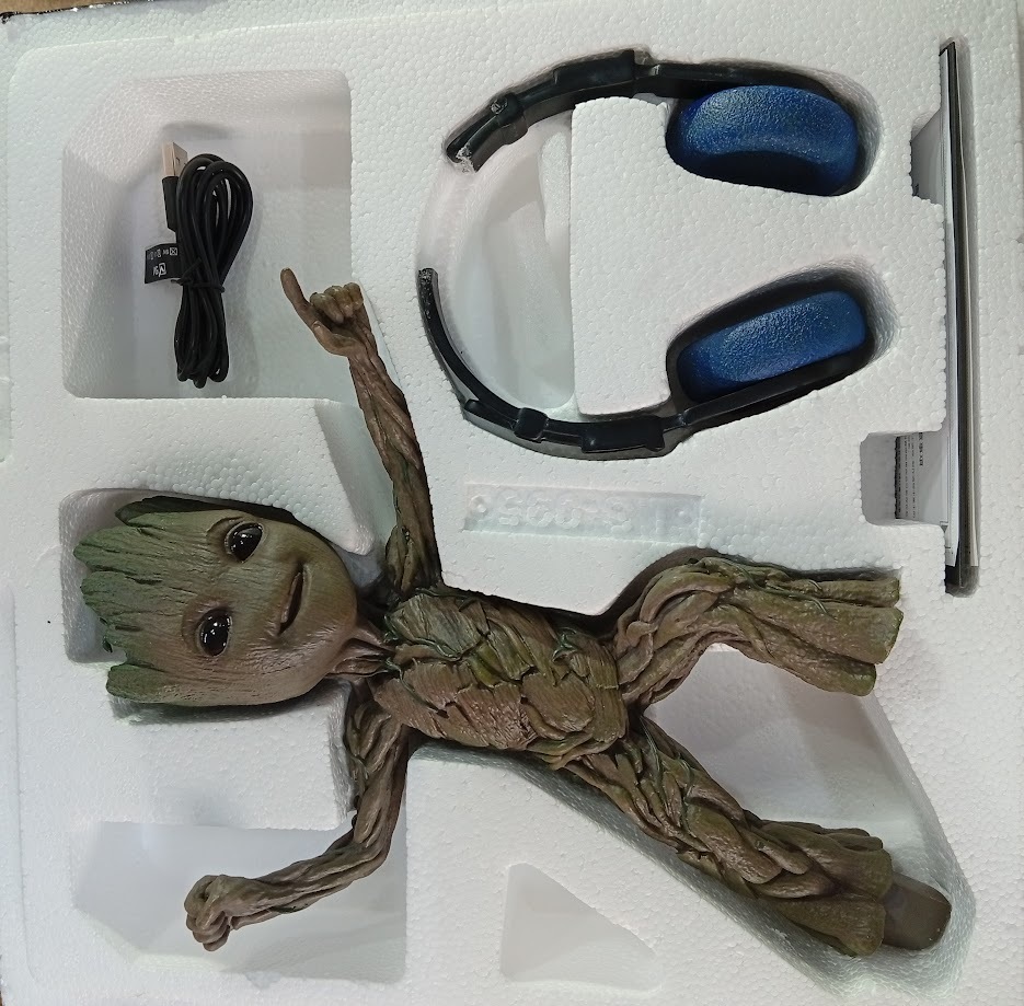 - A piece of Groot’s headphones is missing.