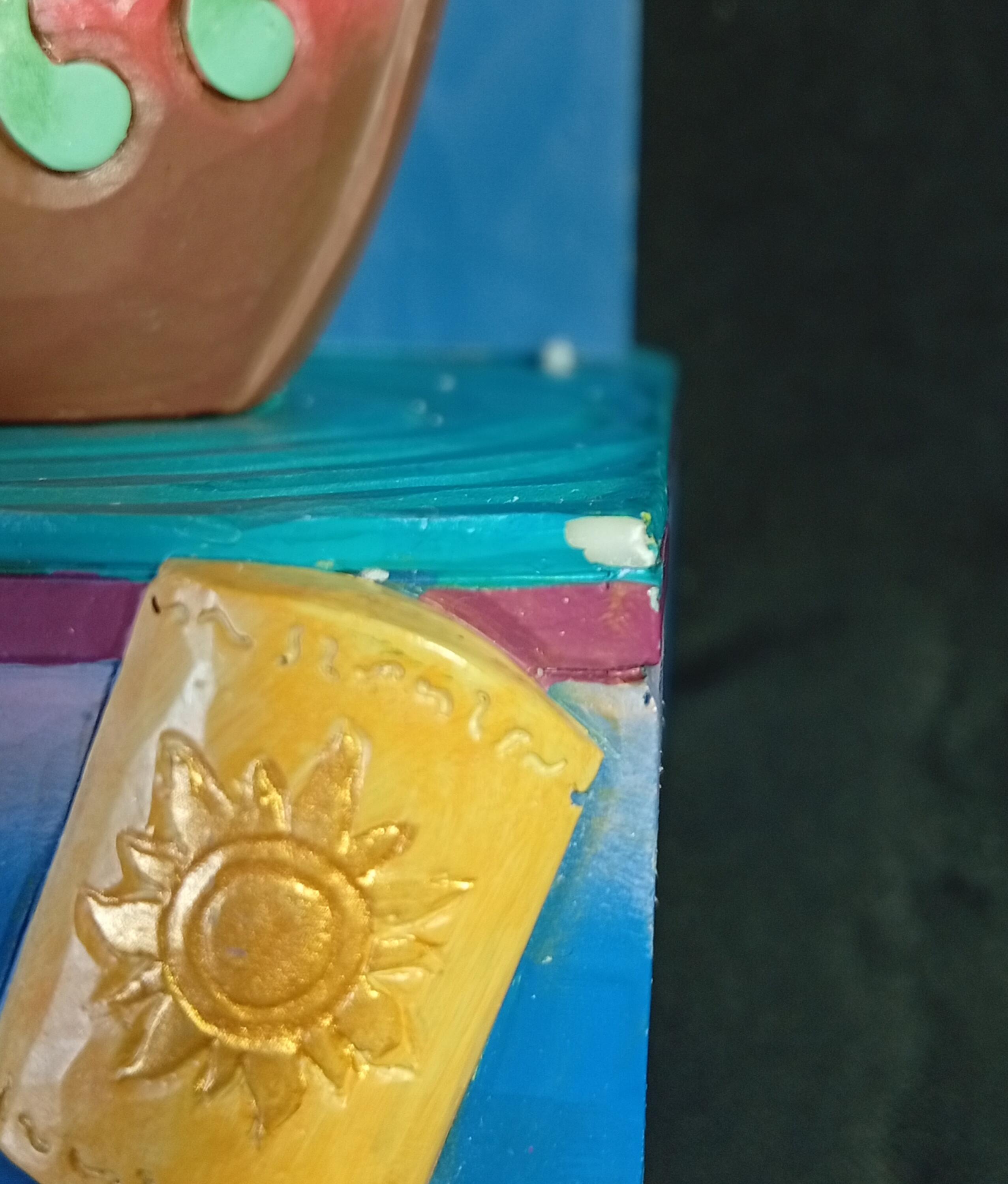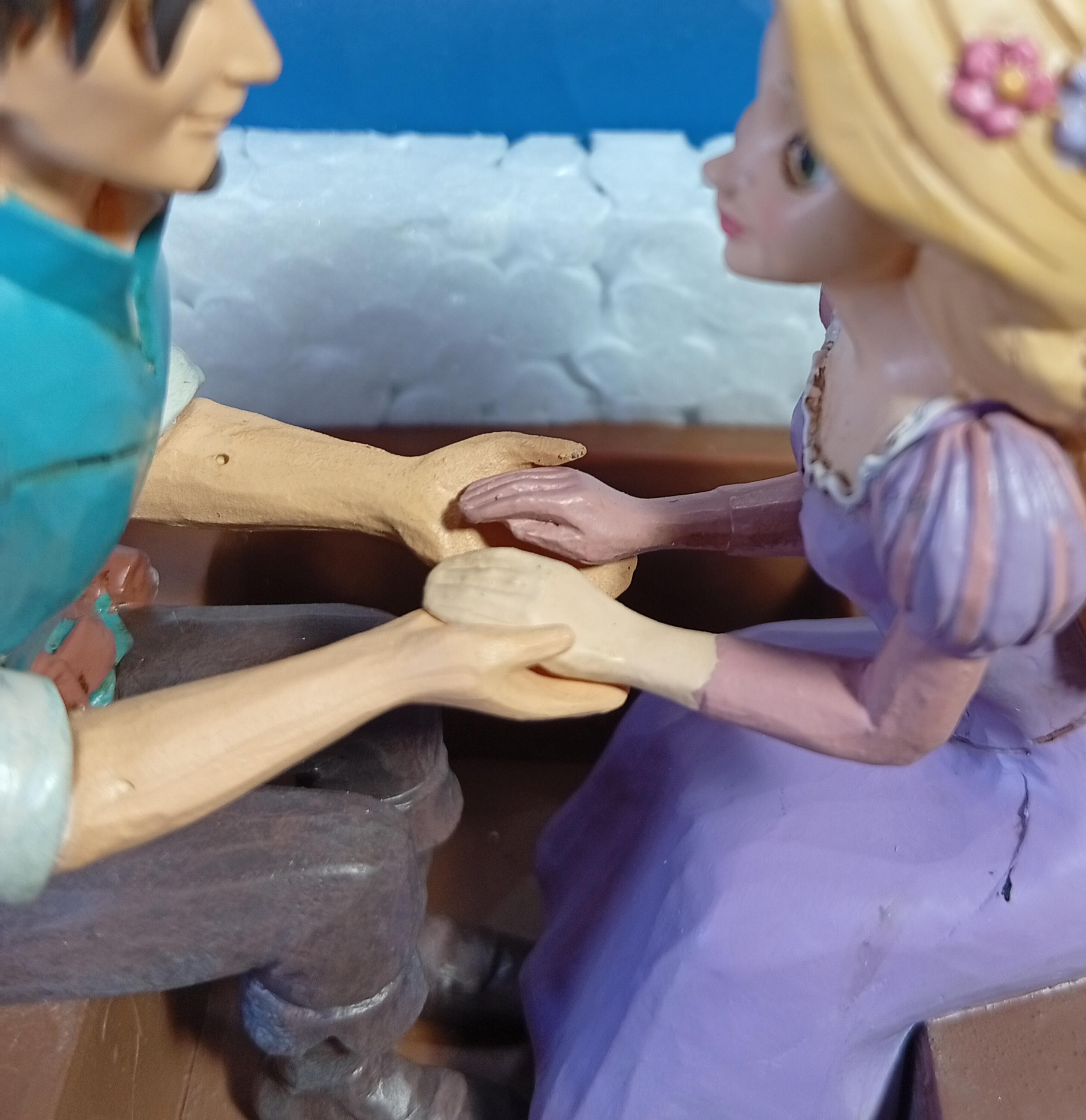 - Rapunzel's hand is painted pink
